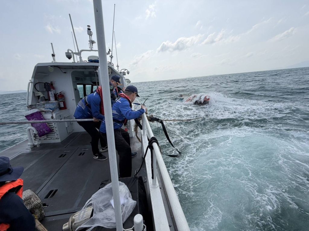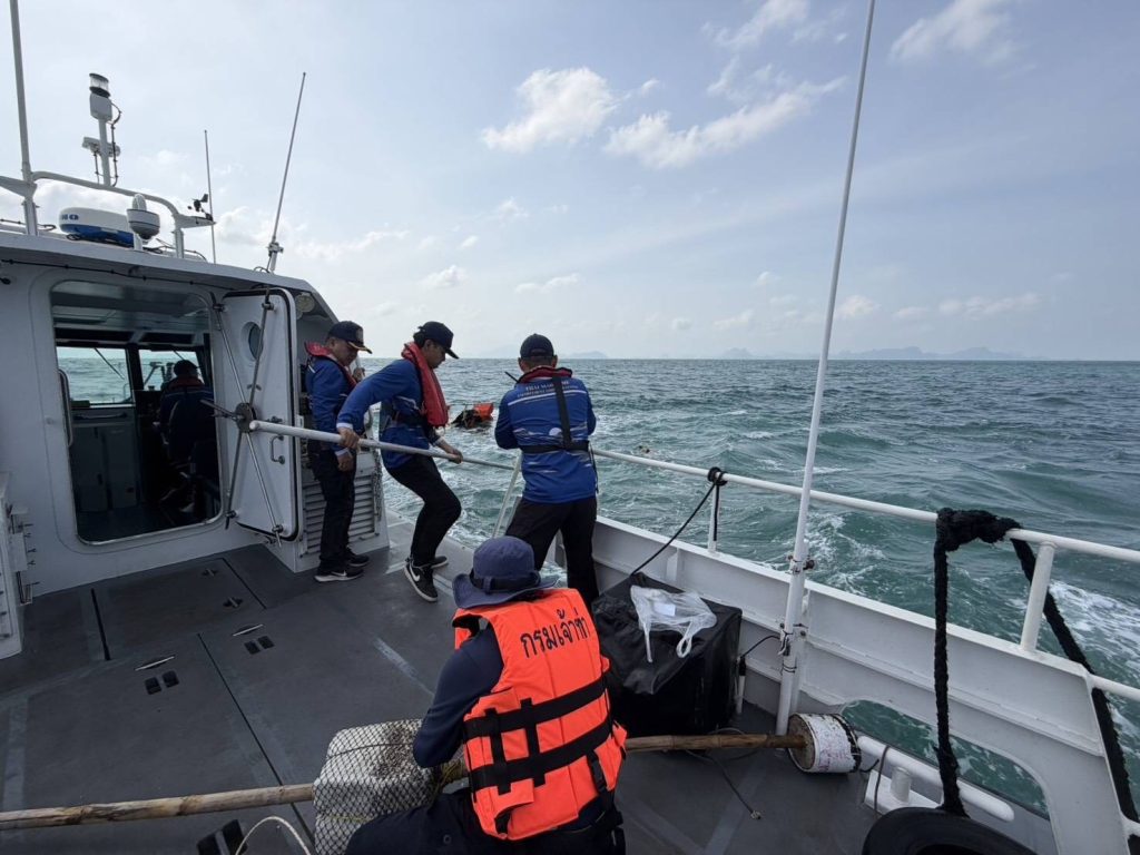 เมื่อเวลา 12.00 น. วันที่ 22 ม.ค.69 น.อ.ณัฐพล สินพูลผล รอง ผอ.ศูนย์รักษาความสงบของชาติทางทะเลจังหวัดสุราษฎร์ธานี (ศรชล.) รับแจ้งจากเจ้าหน้าที่เจ้าท่าจังหวัดสาขาสุราษฎร์ธานี ว่าพบเรือจม ลอยปริ่มน้ำ บริเวณเส้นทางการเดินเรือ เร่งนำเรือตรวจการความเร็วสูงบริเวณชายฝั่ง4003 พร้อมเจ้าหน้าที่ ศรชล.สุราษฎร์ธานี เข้าตรวจสอบที่เกิดเหตุกลางทะเล