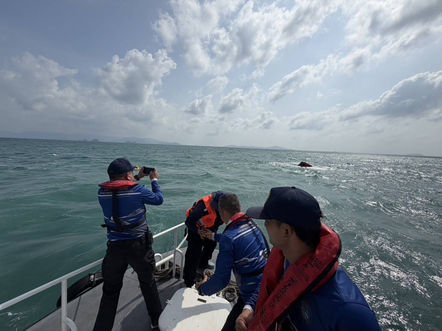 เมื่อเวลา 12.00 น. วันที่ 22 ม.ค.69 น.อ.ณัฐพล สินพูลผล รอง ผอ.ศูนย์รักษาความสงบของชาติทางทะเลจังหวัดสุราษฎร์ธานี (ศรชล.) รับแจ้งจากเจ้าหน้าที่เจ้าท่าจังหวัดสาขาสุราษฎร์ธานี ว่าพบเรือจม ลอยปริ่มน้ำ บริเวณเส้นทางการเดินเรือ เร่งนำเรือตรวจการความเร็วสูงบริเวณชายฝั่ง4003 พร้อมเจ้าหน้าที่ ศรชล.สุราษฎร์ธานี เข้าตรวจสอบที่เกิดเหตุกลางทะเล