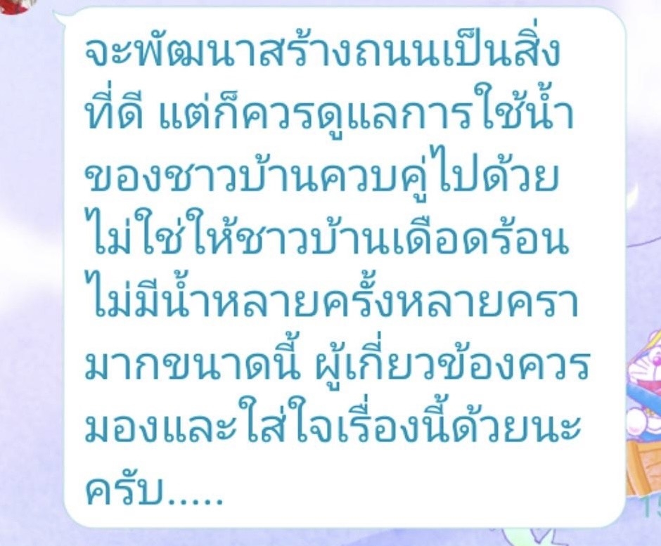 ชาวบ้านรายหนึ่ง เปิดเผยว่า ตอนนี้รถยนต์วิ่งเข้าออกไม่ได้แล้ว ชาวบ้านจะเข้าบ้านได้ยังไง อยากให้ผู้รับเหมาวางแผนแจ้งชาวบ้านบ้าง เวลาจะทำอะไร จะได้เตรียมตัวทัน และอยากให้มีรถน้ำมาราดให้ฝุ่นละอองน้อยลง รวมถึงอยากให้หน่วยงานที่รับผิดชอบโดยตรง ลงพื้นที่มาควบคุมงาน มาตรวจสอบดูบ้าง เพราะตั้งแต่เริ่มรื้อถนนมายังไม่เห็นเจ้าหน้าที่มาควบคุมดูแลตรวจสอบการทำงานของผู้รับเหมาเลย ตนมองว่าถนนเส้นนี้จะเหมือนถนนพระราม 2 หรือเปล่า แต่บางคนก็เริ่มเรียกถนนซอยนี้ว่า “ ถนนควายเมิน” ไปแล้ว บางครั้งก็เห็นผู้รับเหมามาทำงานบ้าง หยุดบ้าง ทำๆหยุดๆ แล้วเมื่อไหร่ถนนจะเสร็จ พวกชาวบ้านต้องทนทุกข์ทรมานไปแบบนี้อีกนานเท่าไหร่กัน วอนผู้ว่าราชการจังหวัดราชบุรี ส่งเจ้าหน้าที่ลงมาช่วยเหลือชาวบ้านด่วน!!!ด้วยครับ