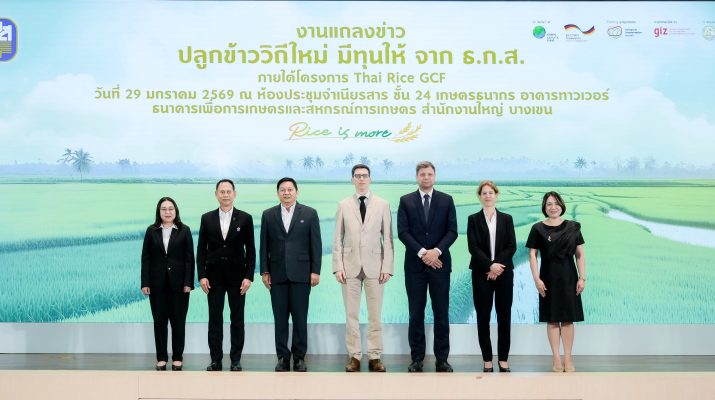 วันนี้ (29 มกราคม 2569) นายไพศาล หงษ์ทอง รองผู้จัดการ ธนาคารเพื่อการเกษตรและสหกรณ์การเกษตร (ธ.ก.ส.) เปิดเผยว่า ธ.ก.ส. ร่วมกับองค์กรความร่วมมือระหว่างประเทศของเยอรมัน (Deutsche Gesellschaft für Internationale Zusammenarbeit GmbH : GIZ) จัดงาน “ปลูกข้าววิถีใหม่ มีทุนให้จาก ธ.ก.ส. ภายใต้โครงการ Thai Rice GCF” เปิดตัวรูปแบบเงินอุดหนุน และสินเชื่อดอกเบี้ยต่ำ ภายใต้โครงการเพิ่มศักยภาพการปลูกข้าวที่เท่าทันต่อภูมิอากาศ (Thai Rice: Strengthening Climate-Smart Rice Farming Project) โดยมีวัตถุประสงค์เพื่อปรับเปลี่ยนกระบวนทัศน์การปลูกข้าวของเกษตรกรให้เข้าสู่วิถีการปลูกข้าวที่ลดการปล่อยก๊าซเรือนกระจกและมีความเท่าทันต่อสภาพภูมิอากาศ ด้วยการนำเทคโนโลยีที่เท่าทันต่อภูมิอากาศ (Climate Smart Technology: CST) มาปรับใช้ เพื่อสร้างความสามารถในการรับมือกับการเปลี่ยนแปลงสภาพภูมิอากาศของเกษตรกรรายย่อย ภายใต้งบประมาณสนับสนุนจากกองทุนภูมิอากาศสีเขียว (Green Climate Fund: GCF) กระทรวงเพื่อความร่วมมือทางเศรษฐกิจและการพัฒนาแห่งสหพันธ์สาธารณรัฐเยอรมนี (BMZ) และภาคเอกชน พร้อมทั้งได้รับความร่วมมือจากหลายภาคส่วน อาทิ กรมการข้าว กรมส่งเสริมการเกษตร องค์กรความร่วมมือระหว่างประเทศของเยอรมัน (GIZ) และหน่วยงานพันธมิตรทั้งภาครัฐ และเอกชน โดยมีพื้นที่เป้าหมาย 21 จังหวัด ได้แก่ เชียงราย เชียงใหม่ นครราชสีมา บุรีรัมย์ อุบลราชธานี ร้อยเอ็ด สุรินทร์ ศรีสะเกษ กาฬสินธุ์ ชัยนาท อ่างทอง ปทุมธานี สิงห์บุรี อยุธยา สุพรรณบุรี อุทัยธานี นครสวรรค์ กำแพงเพชร พิษณุโลก พิจิตร และลพบุรี มีระยะเวลาดำเนินโครงการ 5 ปี (พ.ศ. 2566-2571) ทั้งนี้ มีผู้แทนจากกระทวงเกษตรและสหกรณ์ กรมการข้าว กรมส่งเสริมการเกษตร หน่วยงานภาครัฐและภาคเอกชน เข้าร่วมงาน ณ ห้องประชุมจำเนียรสาร ชั้น 24 เกษตรธนากร ธ.ก.ส. สำนักงานใหญ่