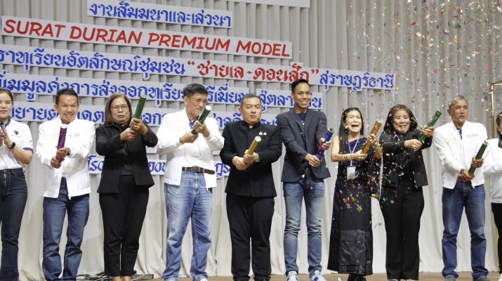 สมาคมการค้าทุเรียนไทยอัตลักษณ์ชุมชน เปิดเวทีเสวนา “SURAT DURIAN PREMIUM MODEL” ที่จังหวัดสุราษฎร์ธานี ขับเคลื่อนการเพิ่มมูลค่าการส่งออกทุเรียนพรีเมี่ยม ยกระดับทุเรียนไทยสู่ตลาดโลก