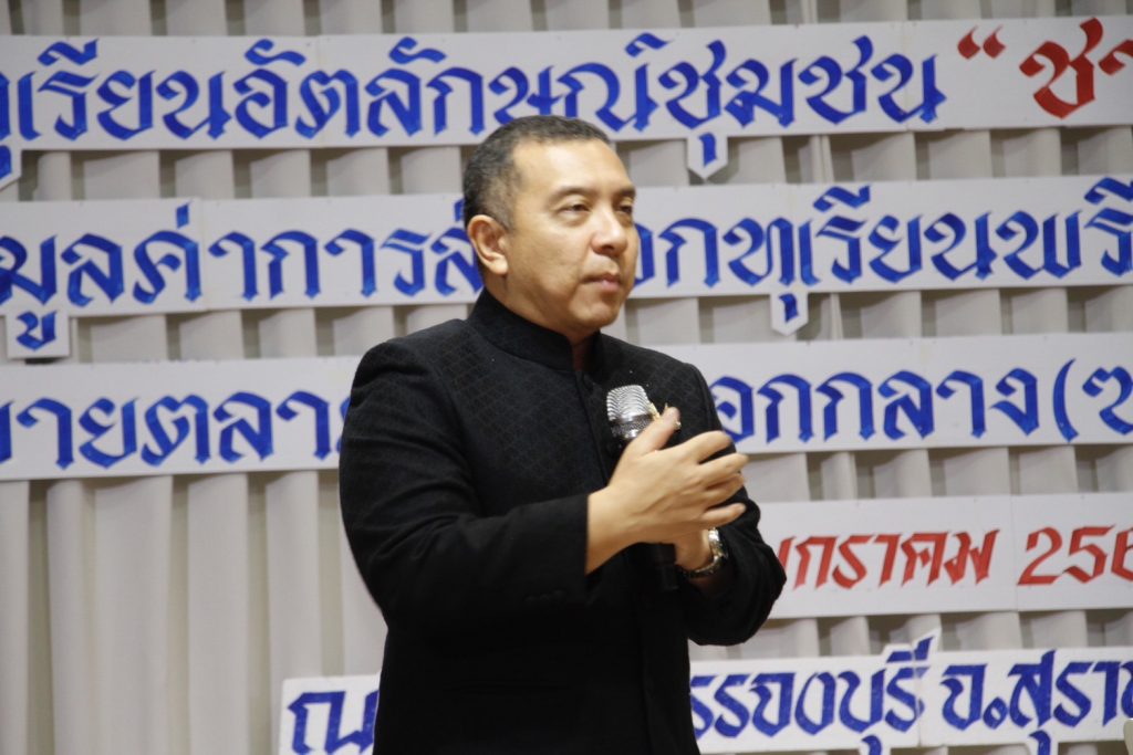 โดยว่าที่ร้อนตรี ภพศักดิ์ ปานสีทอง ในนามนายกสมาคมการค้าทุเรียนไทยอัตลักษณ์ชุมชน กล่าวว่า การจัดงานในครั้งนี้เพื่อส่งเสริมแนวคิด “ทุเรียนไทยอัตลักษณ์ชุมชน” ที่มุ่งสร้างความเข้มแข็งของชุมชน เพิ่มความสามารถในการแข่งขัน ผ่านตราทุเรียนไทยอัตลักษณ์ชุมชน ซึ่งเป็นการรวมพลังของสวนทเรียนในพื้นที่ ให้มีระบบการผลิตและมาตรฐานเดียวกัน มีความสม่ำเสมอของคุณภาพทั้งชุมชน เพื่อสร้างความเชื่อมั่นต่อผู้ซื้อ ทั้งในตลาดจีน ตลาดภายในประเทศ และตลาดต่างประเทศอื่นๆ รวมทั้งเพื่อเชื่อมโยงอัตลักษณ์ชุมชนเข้ากับระบบมาตรฐานและการส่งออกอย่างเป็นรูปธรรม อาทิ วิทยาศาสตร์ไบโอเทคโนโลยี มาตรฐาน GAP มาตรฐานความปลอดภัยอาหาร การตรวจสอบโลหะหนัก และสารต้องห้าม โดยร้อยเรียงทั้งหมดให้เป็น “ระบบเดียวกันในระดับชุมชน” ที่สามารถตรวจสอบได้ เชื่อถือได้ สร้างคุณค่าและมูลค่าเพิ่มให้กับทุเรียนในชุมชน ตลอดจนเพื่อผลักดันอุตสาหกรรมทุเรียนจังหวัดสุราษฎร์ธานี ให้เติบโตได้อย่างมั่นคงและยั่งยืน ก้าวสู่ความเป็นหนึ่งในผู้นำอุตสาหกรรมทุเรียนของประเทศไทยในระยะยาว