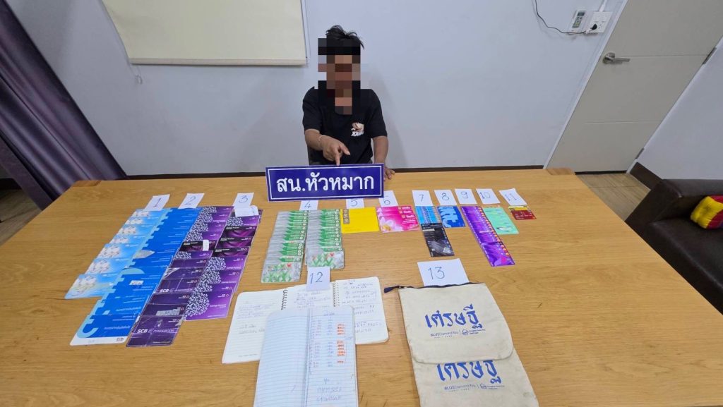พ.ต.ท.ณัฐวัฒน์ ทารักษ์ รองผู้กำกับการสืบสวน สน.หัวหมาก สั่งการให้พ.ต.ท.กิตติโชค ลิปไธสง สารวัตรสืบสวน สน.หัวหมาก และกำลังฝ่ายสืบสวน ร่วมจับกุมนาย OUK AOEUN อายุ 32 ปี สัญชาติกัมพูชา พร้อมของกลางสมุดบัญชีเงินฝากรวมทั้งสิ้น 72 เล่ม และบัตรอิเล็กทรอนิกส์ (ATM) 55 ใบ จากหลายธนาคาร รวมถึงสมุดบันทึกรายการบัญชี 3 เล่ม และกระเป๋าผ้าสกรีนคำว่า “เศรษฐี” อีก 2 ใบ โดยจับกุมได้ภายในหอพักซอยรามคำแหง 24 แยก 16 แขวงหัวหมาก เขตบางกะปิ กรุงเทพมหานคร เมื้อวันที่ 1 ก.พ. ที่ผ่านมา
