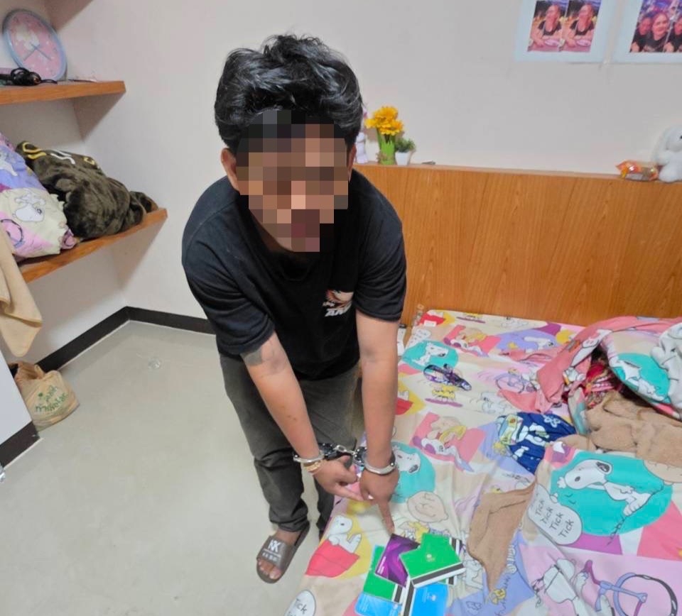 กระทั่งวันที่ 1 ก.พ. เวลาประมาณ 13.30 น. เจ้าหน้าที่ตำรวจได้สืบสวนจนทราบว่าชายคนดังกล่าวได้พะกอาศัยอยู่ที่หอพะกดังกล่าว จึงวางกำลังเฝ้าสังเกตการณ์บริเวณหอพักดังกล่าว ก่อนพบผู้ต้องหาตรงตามตำหนิรูปพรรณออกมาจากห้องพัก จึงแสดงตัวเข้าตรวจสอบและขอตรวจค้นห้องพักจนพบของกลางทั้งหมด