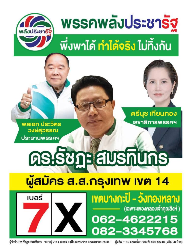ฝากนโยบาย พรรคพลังประชารัฐ “ดร.รัชฏะ สมรทินกร” มาพร้อมนโยบายพัฒนาพื้นที่เขตบางกะปิ-วังทองหลาง “พึ่งพาได้