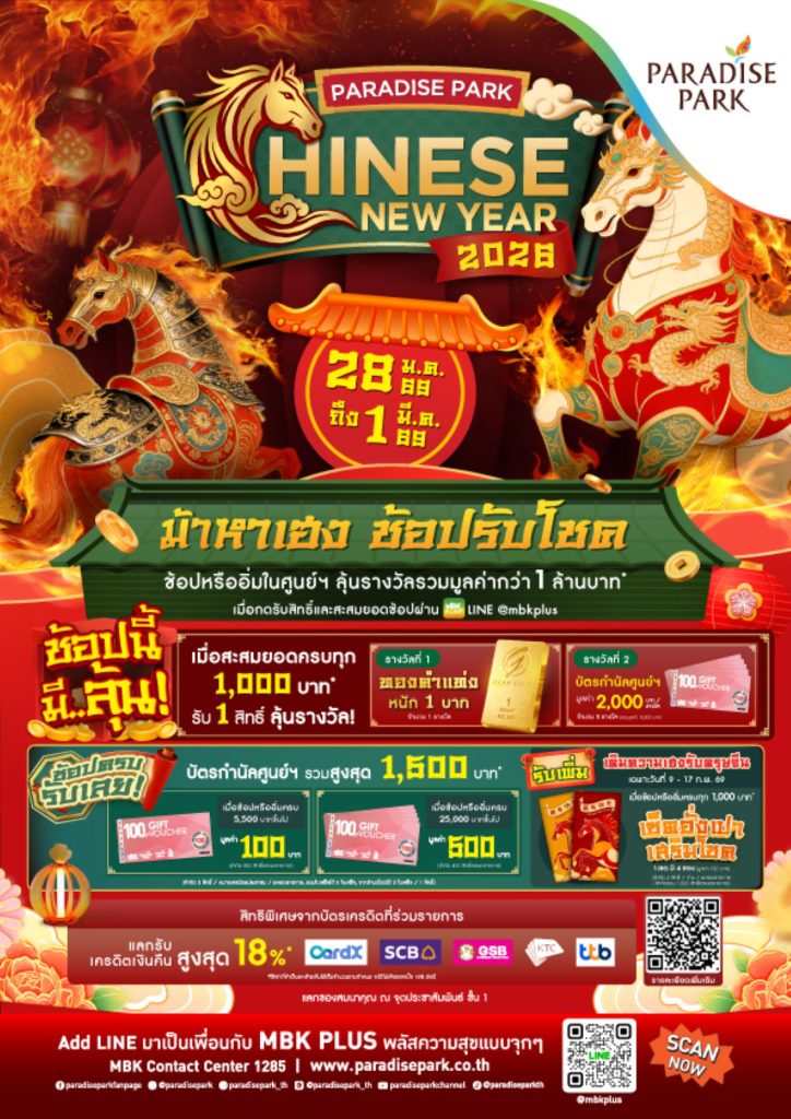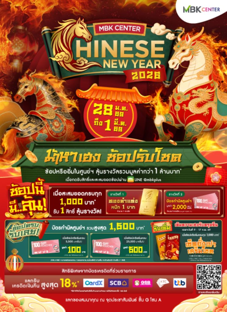 เปิดรับความเฮงกับ Chinese New Year 2026 “ม้าหาเฮง ช้อปรับโชค” เมื่อช้อปหรืออิ่มในศูนย์การค้าเครือเอ็ม บี เค ลุ้น