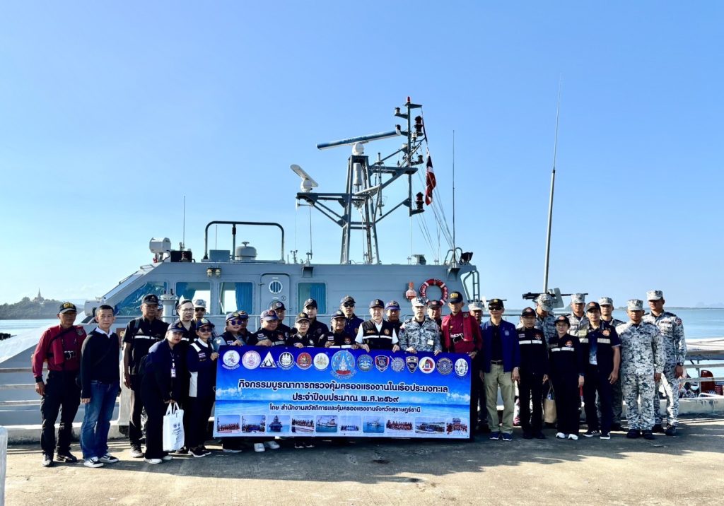 ศรชล.สุราษฎร์ธานีบูรณาการร่วมหน่วยงานตรวจคุ้มครองแรงงานในเรือประมงทะเลแก้ปัญหาค้ามนุษย์