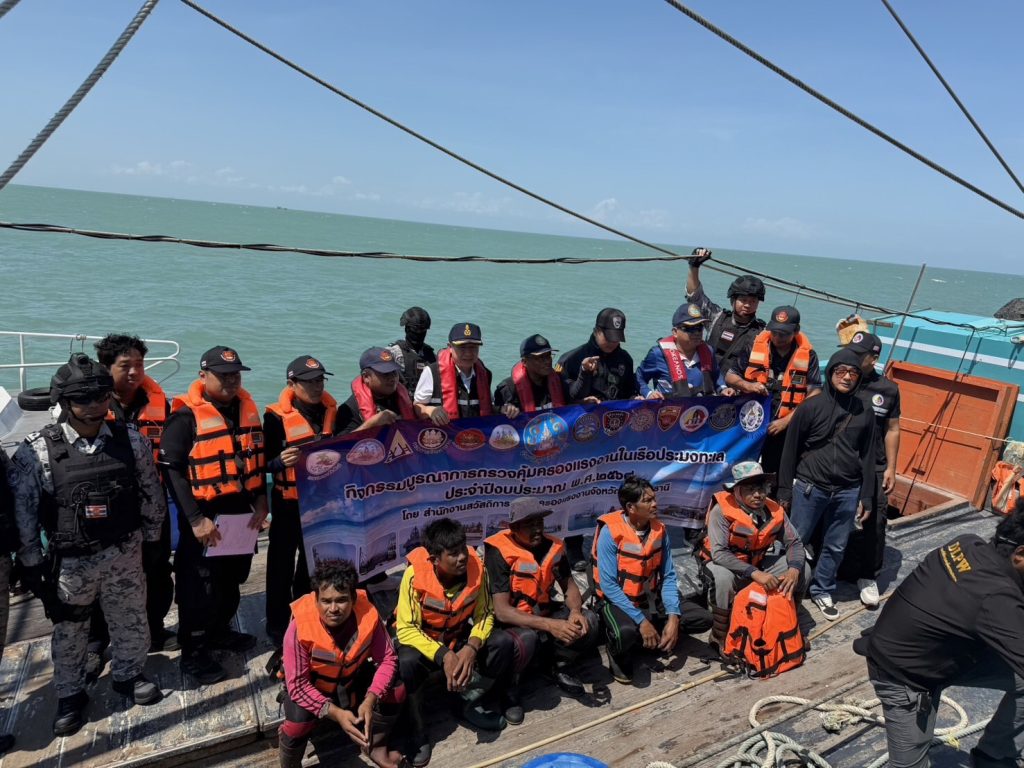 เมื่อวันที่ 4 ก.พ.69 ที่ท่าเทียบเรือแหลมทวด อ.ดอนสัก จ.สุราษฎร์ธานี นายบันดาล สถิรชวาล รองผู้ว่าราชการจังหวัดสุราษฎร์ธานี น.อ.ณัฐพล สินพูลผล รอง ผอ.ศรชล.จว.สุราษฎร์ธานี พร้อมเจ้าหน้าที่ ศรชล.ภาค2 โดย ศรชล.จว.สุราษฎร์ธานี ร่วมบูรณาการตรวจคุ้มครองแรงงานในเรือประมงทะเล ป้องกันการค้ามนุษย์ และยกระดับการจัดลำดับ การแก้ไขการค้ามนุษย์ในประเทศจาก Tier 2 เป็น Tier 1 ตามนโยบายของรัฐบาลร่วมกับหน่วยงานภายในจังหวัดสุราษฎร์ธานี