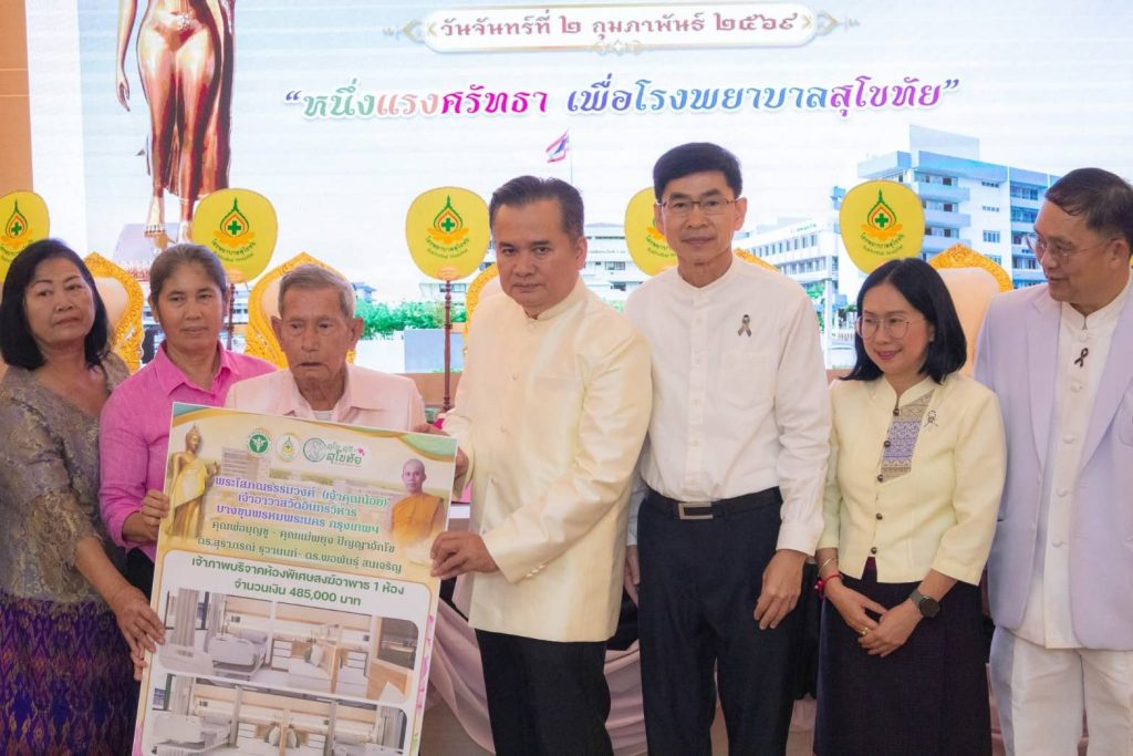 ที่โรงพยาบาลสุโขทัย ได้มีพิธีมอบเงินบริจาคเพื่อสนับสนุนกิจการทางการแพทย์ ภายใต้โครงการ “หนึ่งแรงศรัทธา เพื่อโรงพยาบาลสุโขทัย” โดยมีคณะผู้มีจิตศรัทธานำโดย คุณพ่อบุญชู ปัญญาอักโข และคุณแม่พยุง ปัญญาอักโข พร้อมด้วย ดร.สุชีราภรณ์ ธุวานนท์ และ ดร.พอพันธุ์ สนเจริญ ร่วมถวายปัจจัยกับ พระโสภณธรรมวงศ์ (เจ้าคุณน้อย) เจ้าอาวาสวัดอินทรวิหาร พระอารามหลวง บางขุนพรหม กรุงเทพมหานคร
