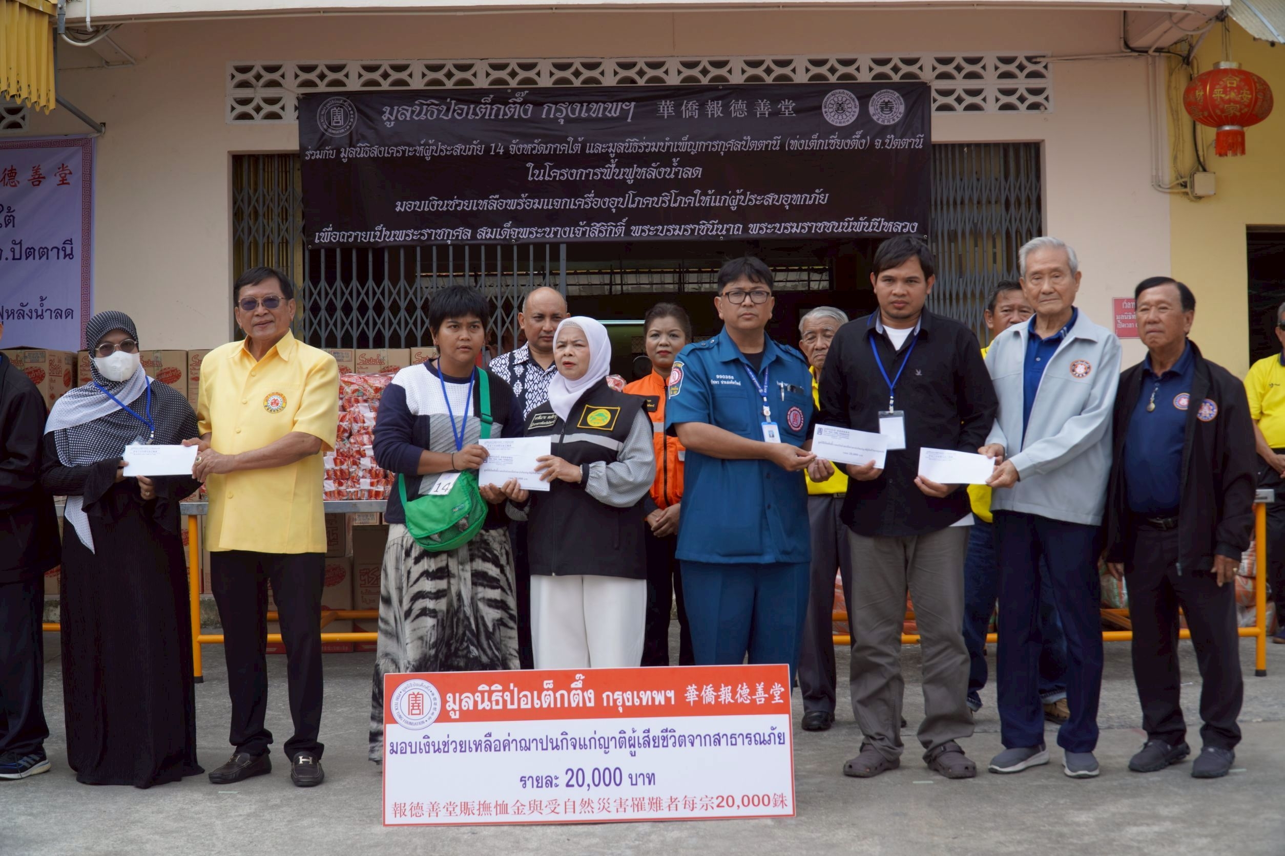 ระหว่างวันที่ 26 มกราคม – 7 กุมภาพันธ์ พ.ศ. 2569 มูลนิธิป่อเต็กตึ๊ง นำโดย นายวิเชียร เตชะไพบูลย์ ประธานกรรมการ ห่วงใยผู้ประสบอุทัยภัยภาคใต้ มอบหมายให้ นายรัชพร ประสงค์ทรัพย์ หัวหน้าแผนกสาธารณภัย พร้อมด้วยเจ้าหน้าที่ แผนกบรรเทาสาธารณภัย แผนกบัญชี/การเงิน แผนกหน่วยแพทย์สงเคราะห์ชุมชน ลงพื้นที่ 9 จังหวัดภาคใต้ ช่วยเหลือผู้ประสบอุทกภัย ในโครงการฟื้นฟูหลังน้ำลด ประกอบด้วย จังหวัดยะลา ปัตตานี สงขลา สตูล พัทลุง นครศรีธรรมราช นราธิวาส ตรัง และสุราษฎร์ธานี โดยแจกจ่ายเครื่องอุปโภคบริโภค อาทิ ข้าวสาร บะหมี่กึ่งสำเร็จรูป ปลากระป๋อง น้ำมันพืช และน้ำปลา รวม 31,500 ชุด ๆ ละ 450 บาท มอบเงินช่วยเหลือแก่ผู้ประสบภัยที่บ้านเรือนเสียหายทั้งหลัง รายละ 12,000 บาท รวม 25 ราย และมอบเงินสงเคราะห์ค่าฌาปนกิจให้แก่ญาติผู้เสียชีวิต รายละ 20,000 บาท จำนวน 189 ราย รวมงบประมาณกว่า 18.25 ล้านบาท โดยมี ผู้แทนจากหน่วยงานรัฐเป็นประธานในพิธี พร้อมทั้งมูลนิธิสงเคราะห์ 14 จังหวัดภาคใต้ และ สมาคม/มูลนิธิแต่ละจังหวัด เป็นผู้ประสานงานและร่วมให้ความช่วยเหลือ