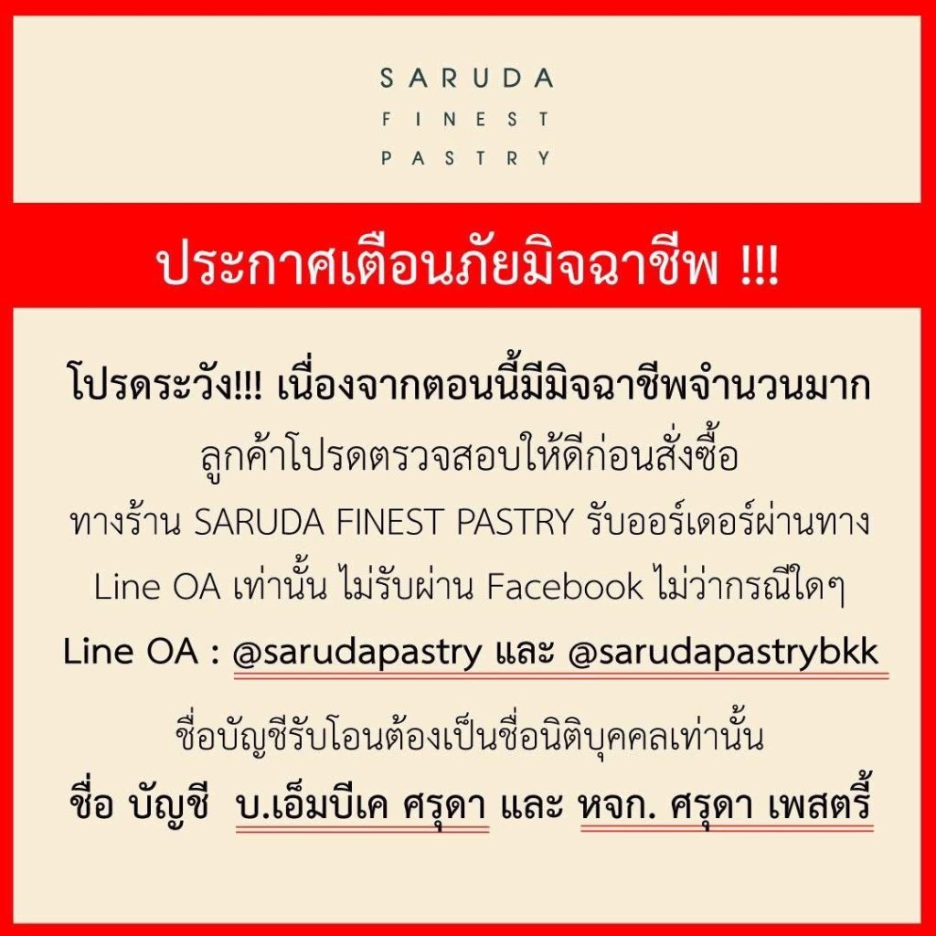 SARUDA FINEST PASTRY เตือนลูกค้า ระวังเพจปลอมแอบอ้างบน Facebook