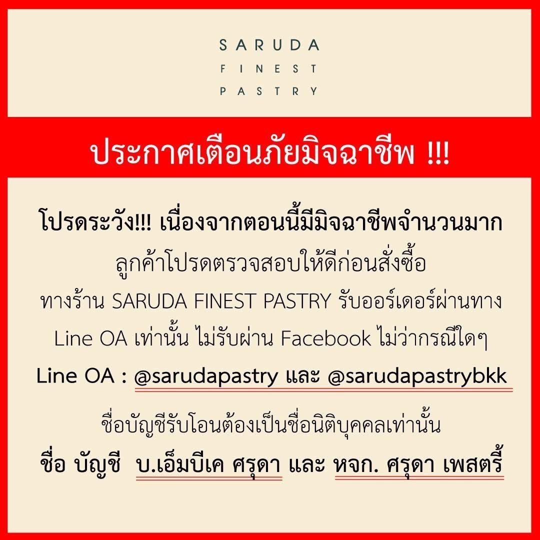 • ชื่อเพจต้องเป็น SARUDA FINEST PASTRY และ SARUDA FINEST PASTRY Bangkok เท่านั้น