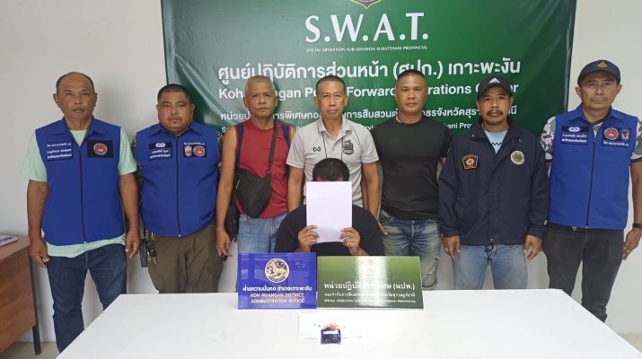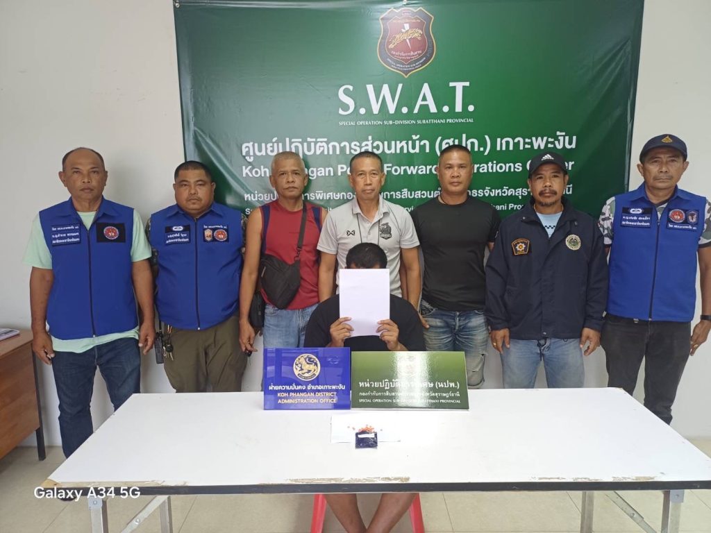 นายธนิสร หรือปุ่น ดวงจิต อายุ 23 ปี ชาว อ.ขนอม จ.นครศรีธรรมราช พร้อมด้วยของกลางยาบ้า จำนวน 200 เม็ด ภายในขนำไม่มีเลขที่ หมู่ที่ 1 ต.เกาะพะงัน อ.เกาะพะงัน จ.สุราษฎร์ธานี นำตัวส่งพนักงานสอบสวน สภ.เกาะพะงันดำเนินคดีในข้อหา”มียาเสพติดให้โทษประเภท 1(ยาบ้าหรือเมทแอมเฟตามีน)