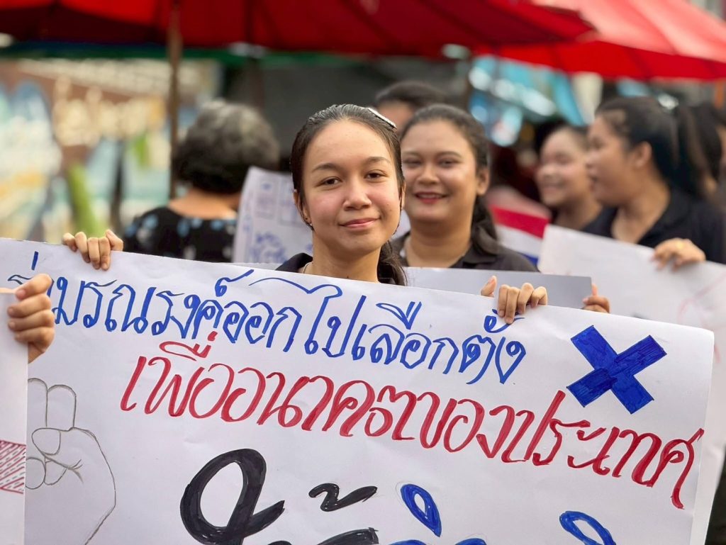 ผอ.การอาชีพท้ายเหมือง ชวนนักศึกษาเดินรณรงค์ให้ออกไปใช้สิทธิ์เลือกตั้ง