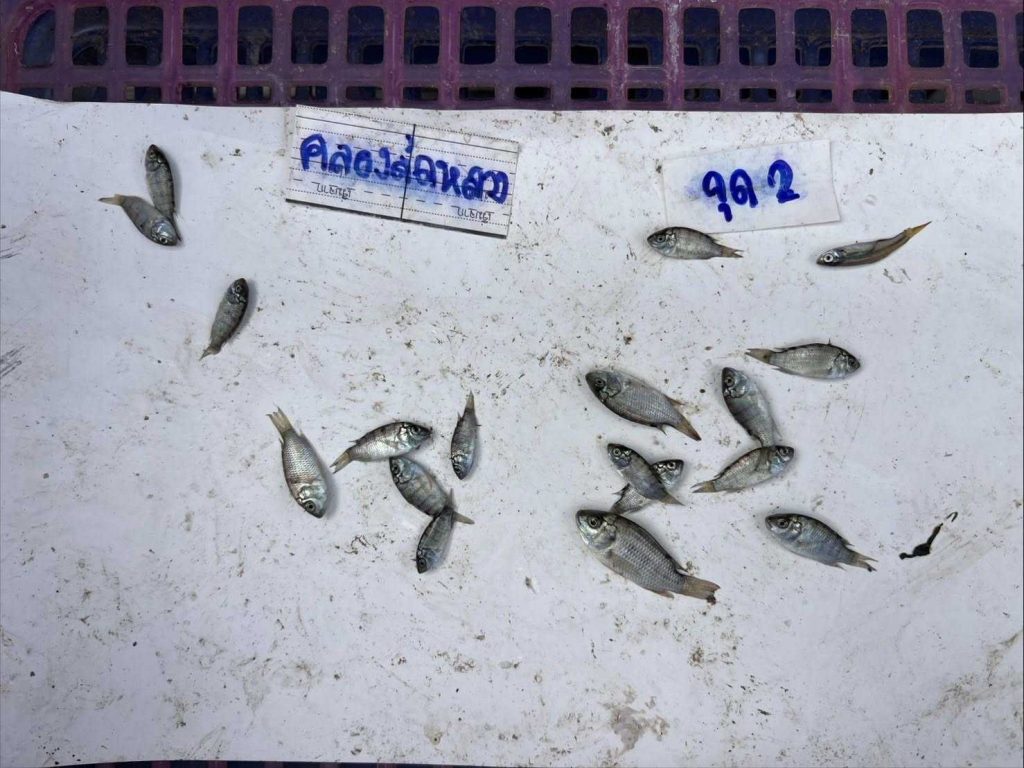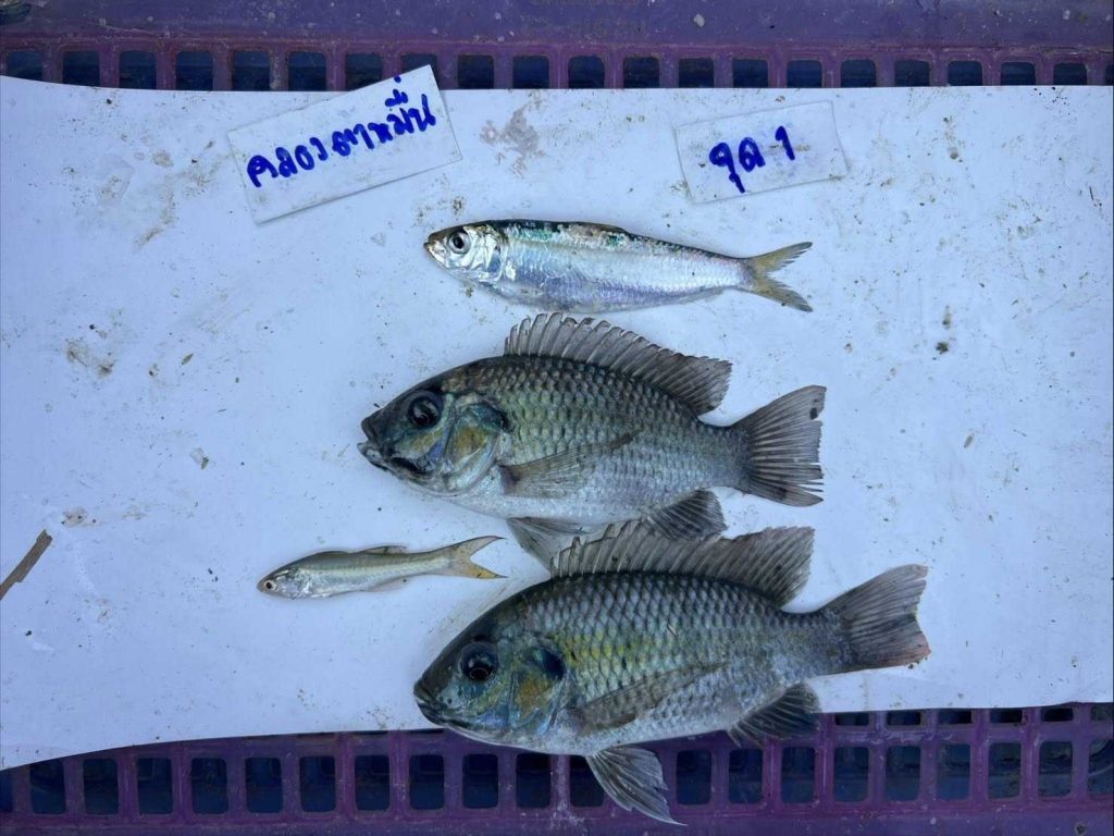 - บริเวณ คลองตาหมื่น (ความเค็ม 10–13 ppt) ตรวจพบปลาหมอคางดำขนาด 10–12 เซนติเมตร ร่วมกับปลากุเรา ปลาหลังเขียว ปลาตะกรับ ปลาขี้จีน และปลากะตัก