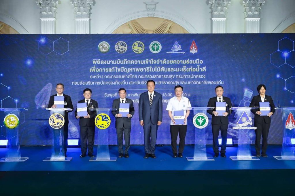 (11 ก.พ. 69) เวลา 13.30 น. ที่ตึกสันติสันติไมตรี ทำเนียบรัฐบาล นายอนุทิน ชาญวีรกูล นายกรัฐมนตรีและรัฐมนตรีว่าการกระทรวงมหาดไทย เป็นประธานสักขีพยานพิธีลงนามบันทึกความเข้าใจ (MOU) ว่าด้วยความร่วมมือเพื่อการแก้ไขปัญหาพยาธิใบไม้ตับ และมะเร็งท่อน้ำดี ระหว่างกระทรวงมหาดไทย กระทรวงสาธารณสุข กรมการปกครอง กรมส่งเสริมการปกครองท้องถิ่น สถาบันวิจัยระบบสาธารณสุข และมหาวิทยาลัยขอนแก่น โดยมี ปลัดกระทรวงมหาดไทย อธิบดีกรมการปกครอง อธิบดีกรมส่งเสริมการปกครองท้องถิ่น รองปลัดกระทรวงสาธารณสุข ผู้อำนวยการสถาบันวิจัยระบบสาธารณสุข รองอธิการบดีมหาวิทยาลัยขอนแก่น ร่วมลงนาม โดยภายในงานมีผู้บริหารระดับสูงของกระทรวงมหาดไทย ผู้ว่าราชการจังหวัด กระทรวงสาธารณสุข สถาบันวิจัยระบบสาธารณสุข มหาวิทยาลัยขอนแก่น และสื่อมวลชน ที่ร่วมเป็นจำนวนมาก