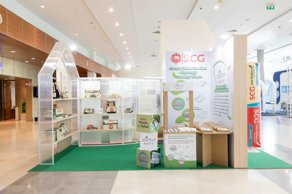 นอกจากนี้ SCG ยังนำเสนอแนวคิด Circular Value Creation สร้างมูลค่าเพิ่มจากทรัพยากรอย่างคุ้มค่า ผ่านผลิตภัณฑ์หลากหลาย อาทิ สารปรับปรุงดิน “เสือดิน” เพื่อฟื้นฟูดินเสื่อมโทรม กระเป๋าจากถุงปูน ภายใต้แบรนด์ “คิด-จาก-ถุง” และสินค้าแต่งบ้านจากแบรนด์ Goodbye Waste ที่นำเศษวัสดุเหลือใช้จากอุตสาหกรรมก่อสร้างมาสร้างคุณค่าใหม่