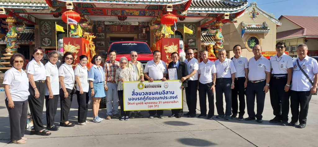 สโมสรสื่อมวลชนคนอีสาน โดย ” อจ.กฤช ลีนะศิริ ” ประธานสโมสรฯ และ “สุนทร ช่วยตระกูล ทอนส์ 79 ” เลขานุการสโมสรฯ, อาม บุนนาค, สุพจน์ พันธ์ภูมิ, คณะกรรมการบริหาร ร่วมกันมอบรถยนต์ ” ออฟโรส ” ขับเคลื่อน 4 ล้อ เอนกประสงค์ เพื่อกู้ภัยสาธารณะ ให้กับ ” มูลนิธิพุทธธรรม 31 นครราชสีมา” เพื่อใช้ในการช่วยเหลือประชาชน ผู้ประสบภัยพิบัติต่างๆ