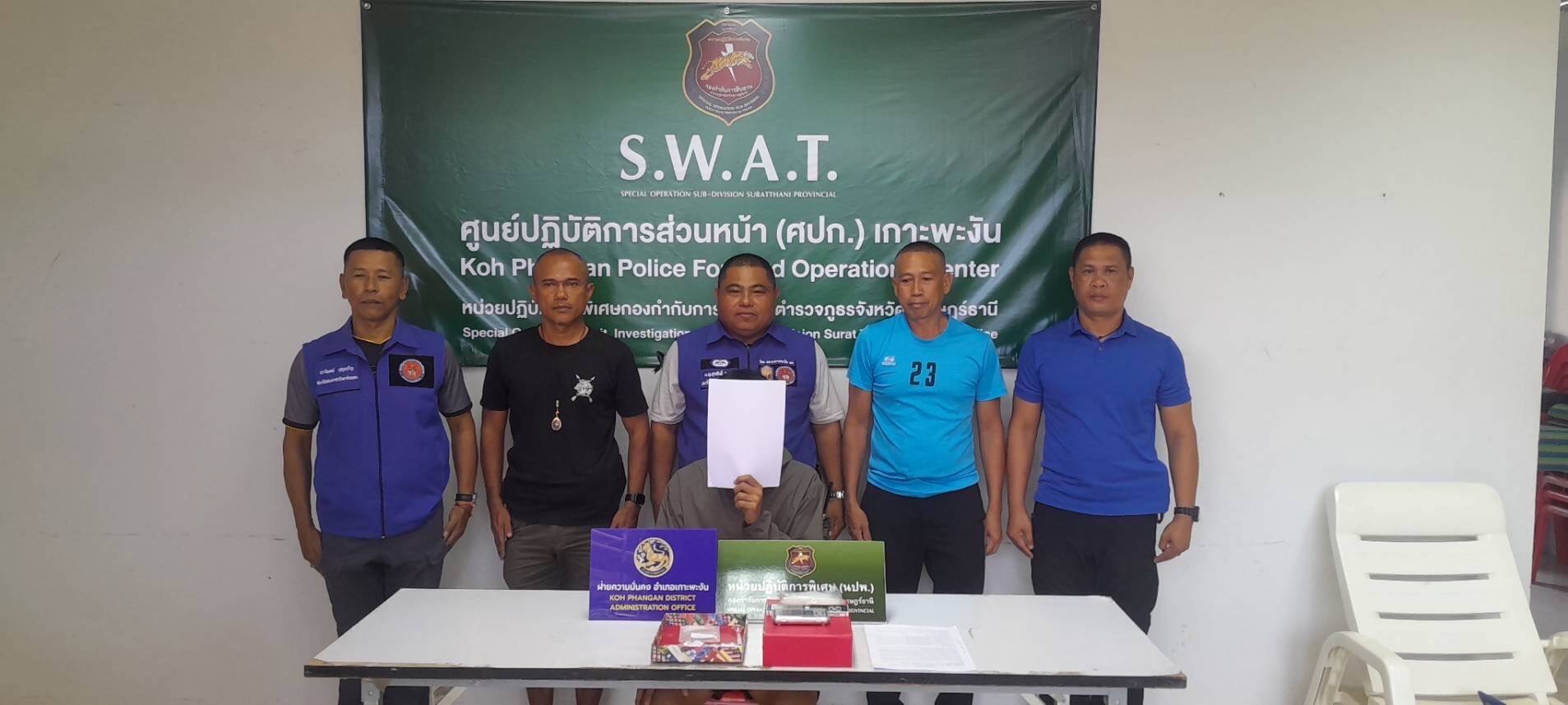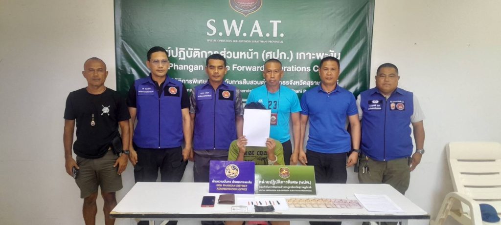 นปพ.กก.สส..ภ.จว.สุราษฎร์ธานีรวบ2 ผู้ต้องหาคนไทย-ต่างด้าวค้ายา โพสต์เฟซบุ๊กขายยาเสพติดบนเกาะพะงัน
