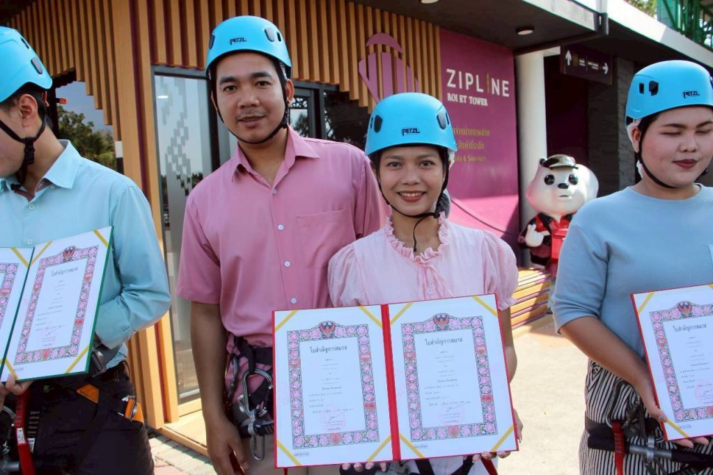 ร้อยเอ็ด คู่รักเหินฟ้า จดทะเบียนสมรส โหนซิปไลน์หอโหวด 101 ฉลองวันแห่งความรัก