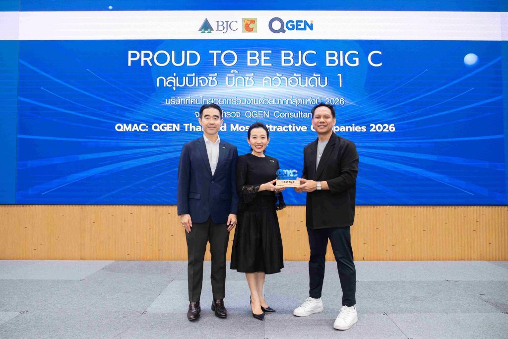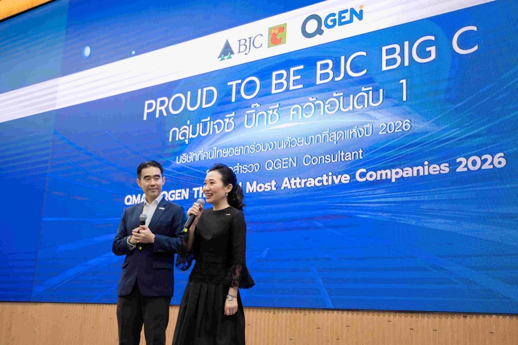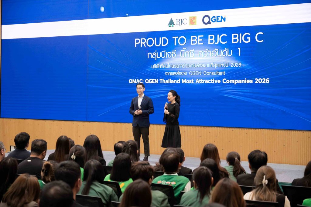กลุ่มบีเจซี บิ๊กซี สร้างปรากฏการณ์ครั้งสำคัญในตลาดแรงงานไทย หลังได้รับการจัดอันดับให้ครอง อันดับ 1 จาก 55 บริษัท ที่คนไทยอยากร่วมงานด้วยมากที่สุด ประจำปี 2569 จากเวที “QMAC: QGEN Thailand Most Attractive Companies 2026” โดย QGEN Consultant บริษัท