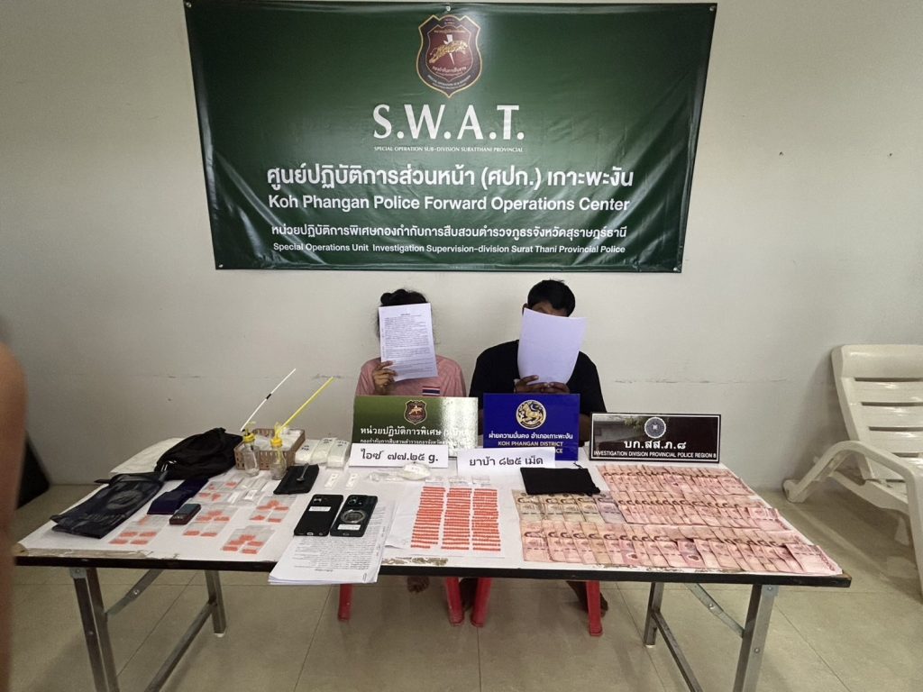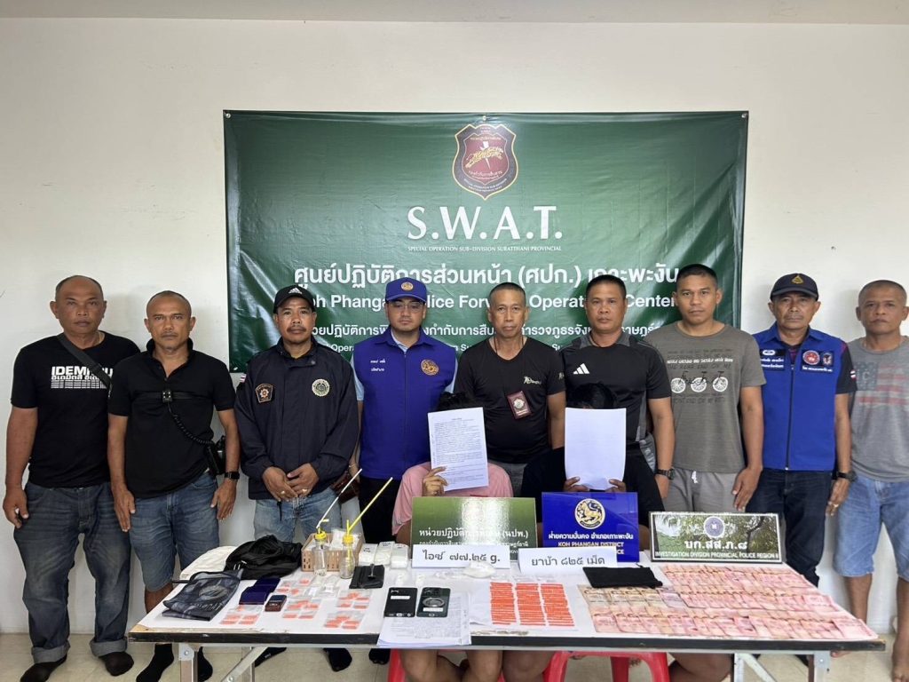 พ.ต.ท.เจริญชัย กล่าวว่า ตามนโยบายของ สุวัฒน์ สุขศรี ผบก.ภ.จว.สุราษฏร์ธานี ได้สั่งการให้หน่วยปฎิบัติการพิเศษกองกำกับการสืบสวนตำรวจภูธรจังหวัดสุราษฎร์ธานี สนธิกำลังร่วมกับ สภ.เกาะพะงัน สืบสวนระดมกวาดล้างยาเสพติดเพื่อลดการแพร่ระบาดยาเสพติดในแหล่งท่องเที่ยวจากการแพร่ระบาดยาเสพติดจากชาวต่างชาติสู่ชาวต่างชาติ หรือจากชาวต่างชาติสู่คนไทยหรือจากคนไทยสู่ชาวต่างชาติและจากคนไทยสู่คนไทยและกลุ่มผู้ใช้แรงงานต่างชาติ จึงได้เปิดปฎิบัติการกวาดล้างยาเสพติด โดยสามารถจับกุมตัวนายมงคล คงกระพันธ์ อายุ 38 ปี ชาวอ.ละแม จ.ชุมพร และน.ส.เมธิณี จามพัฒนานนท์ อายุ 27 ปี ชาว อ.เกาะพะงัน จ.สุราษฎร์ธานี ผู้ต้องหาค้ายาเสพติด พร้อมของกลางยาบ้าจำนวน 825 เม็ด,ไอซ์จำนวน 77.25 กรัม,อุปกรณ์การเสพ จำนวน 2 ชุด,เครื่องชั่งดิจิตอล จำนวน 1 เครื่องเงินสดจำนวน 9,500 บาท