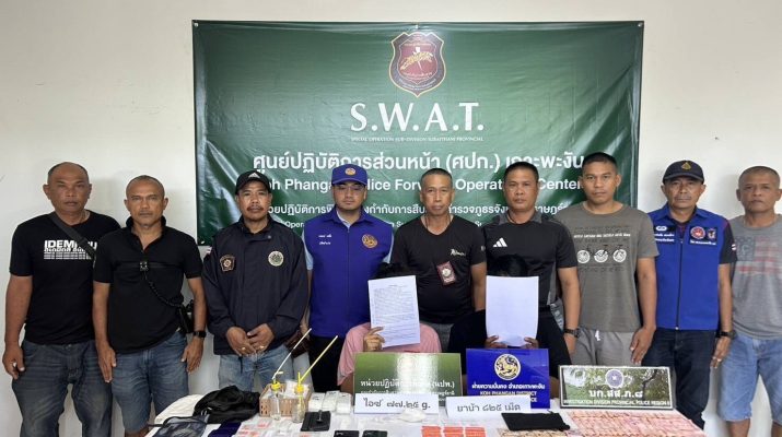 โดยผิดกฎหมาย” และนอกจากนี้ยังสามารถจับกุมตัวนายธิติพงษ์ อุไรพันธ์ อายุ 30 ปี,น.ส.มณีรัตน์ สีดาดวง อายุ 43 ปี,นายธีระวัฒน์ ถนอมรัก อายุ 36 ปี,นายวรุฒ ทองชุ่ม อายุ 37 ปี,น.ส.รุ่งอรุณ ดังชัยภูมิ อายุ 41 ปี,นายสุเมฆ โพธิ์ศิริ อายุ 39 ปี,น.ส. ธิญาดา ไชนอก อายุ 21 ปี, ผู้ต้องเสพยาเสพยิดรวม 7 ราย ส่งพนักงานสอบสวน สภ.เกาะพะงัน ดำเนินคดคีในข้อหา “เสพยาเสพติดให้โทษประเภท1