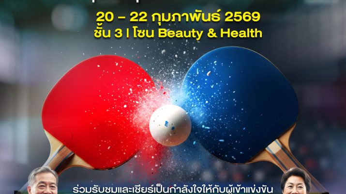 มาร่วมชมและเชียร์ผู้เข้าแข่งขันเทเบิลเทนนิสรุ่นอาวุโส รอบคัดเลือกภาคกลาง 1 ใครจะคว้าแชมป์และได้โควต้าแข่งขันระดับประเทศต่อไป ในวันศุกร์ที่ 20 – วันอาทิตย์ที่ 22 กุมภาพันธ์ 2569 เวลา 09.00 น. – 18.00 น. ณ โซน Beauty & Health ชั้น 3 ศูนย์การค้าพาราไดซ์ พาร์ค