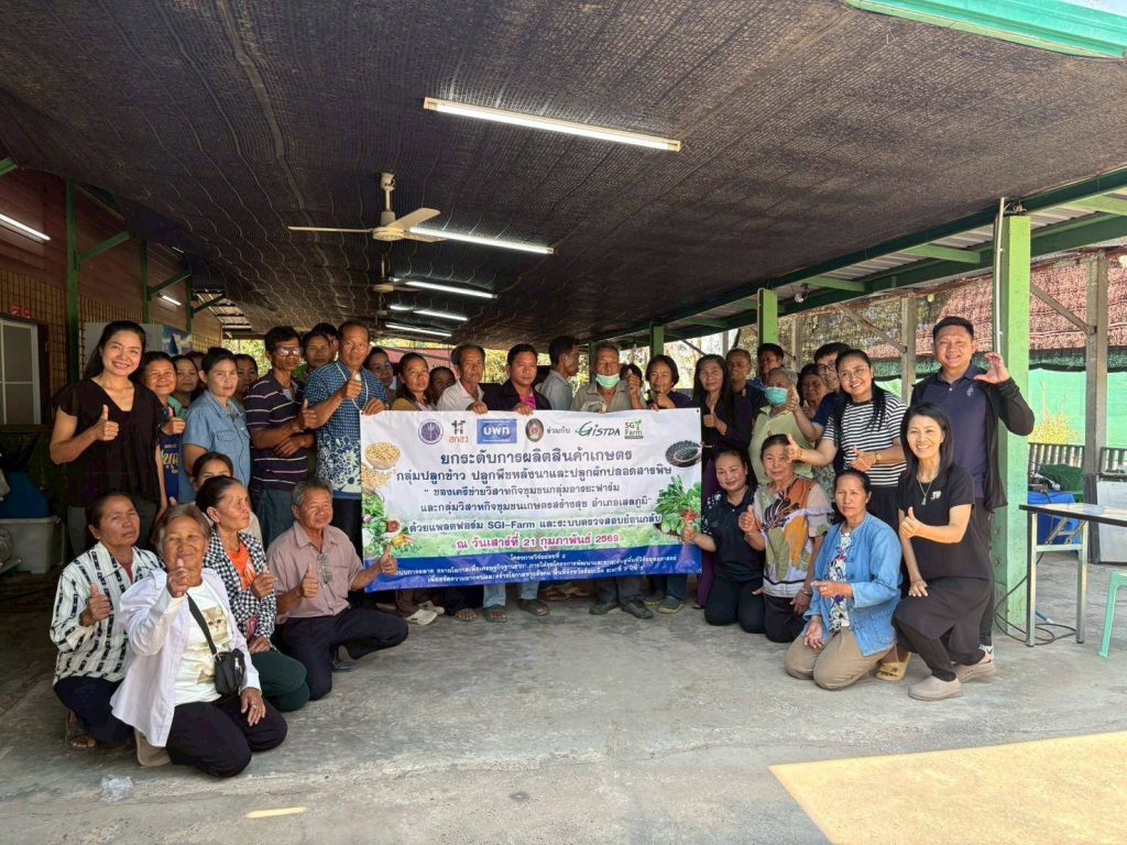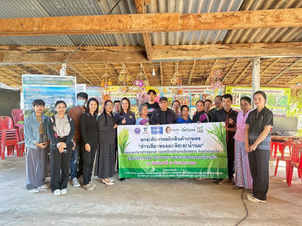 ร่วมสนับสนุนองค์ความรู้ด้านเทคโนโลยีอวกาศและภูมิสารสนเทศ ถ่ายทอดการใช้ข้อมูลแผนที่เชิงลึกเพื่อบริหารจัดการแปลงเกษตรอย่างแม่นยำ หัวใจสำคัญของโครงการคือแพลตฟอร์ม “SGI-Farm” นวัตกรรมภูมิสารสนเทศแบบมีส่วนร่วม (GI Community Platform) ที่รวบรวมข้อมูลรายแปลง ทั้งทะเบียนเกษตรกร กิจกรรมการเพาะปลูก มาตรฐานการผลิต และข้อมูลผลผลิต ก่อนสร้างเป็น QR Code ติดบนฉลากสินค้า เมื่อผู้บริโภคสแกนสามารถตรวจสอบย้อนกลับถึงแหล่งปลูก กระบวนการผลิต และมาตรฐานได้อย่างโปร่งใส ชัดเจน และเชื่อถือได้