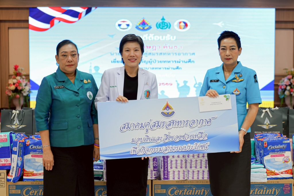 นายกสมาคมแม่ อผศ. ต้อนรับ นายกสมาคมคู่สมรสทอ. นำคณะเข้าเยี่ยมบำรุงขวัญทหารผ่านศึก พร้อมมอบเงินบริจาคและสิ่งของสนับสนุนกิจกรรมสาธารณประโยชน์แก่รพ.ทหารผ่านศึก