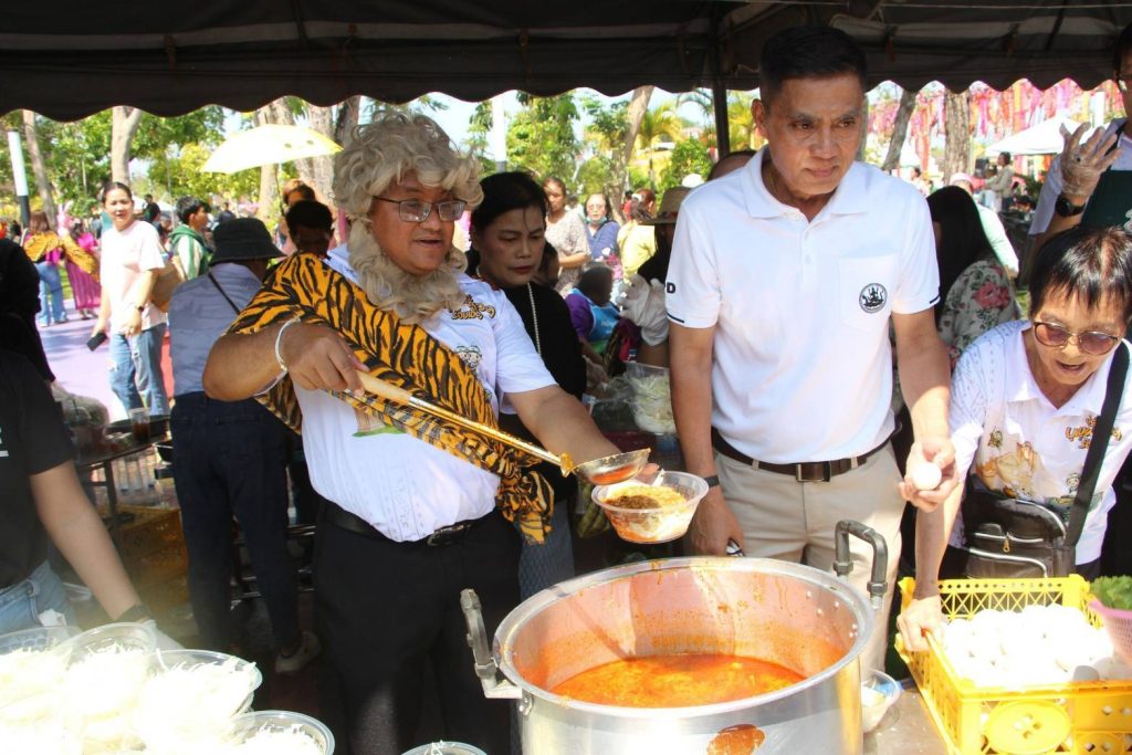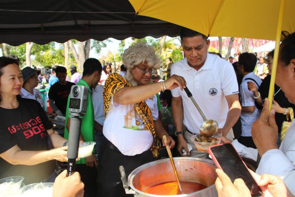 จากนั้น ผู้ว่าราชการจังหวัดร้อยเอ็ดได้เดินทางไปยังบริเวณสวนสมเด็จพระศรีนครินทร์ร้อยเอ็ด ซึ่งมีประชาชนและผู้มีจิตศรัทธานำอาหาร ข้าวปุ้น และเครื่องดื่มมาตั้งโรงทาน เพื่อแจกจ่ายให้แก่ผู้มาร่วมงานอย่างทั่วถึง ท่ามกลางบรรยากาศที่คึกคักและอบอุ่น โดยมีประชาชนจำนวนมากร่วมถ่ายภาพและทักทายผู้ว่าราชการจังหวัดอย่างเป็นกันเอง