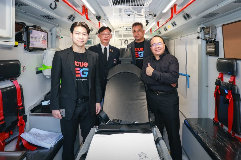 การปฏิบัติงานบนรถรักษาอัมพาตเคลื่อนที่ จำเป็นต้องอาศัยศักยภาพเครือข่ายสื่อสารที่มีความหน่วงต่ำและมีความเสถียรสูง เพื่อรองรับการส่งภาพ CT scan สมอง และการปรึกษาแพทย์ผู้เชี่ยวชาญทางไกล (Teleconsult) แบบเรียลไทม์ ด้วยศักยภาพของ True 5G จะทำให้ทีมแพทย์สามารถวินิจฉัยและให้คำแนะนำการรักษาได้ทันที ช่วยให้ผู้ป่วยได้รับยาสลายลิ่มเลือดภายใน “ช่วงเวลาทอง” 4 ชั่วโมง 30 นาที ซึ่งเป็นปัจจัยสำคัญที่ช่วยลดอัตราการเสียชีวิตและความพิการได้อย่างมีนัยสำคัญ