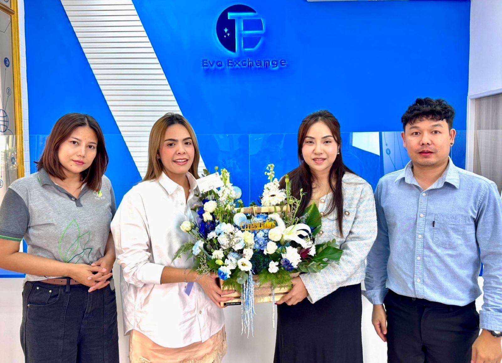 นางสาวนริศรา ณรงค์พัฒนะ รองกรรมการผู้จัดการ บริษัท เดอะไนน์ เซ็นเตอร์ จำกัด (ที่ 2 จากซ้าย) ผู้บริหารศูนย์การค้าในเครือ เอ็ม บี เค ร่วมแสดงความยินดี แก่ นางสาวจิรัชญา ทาหอม ผู้จัดการทั่วไป บริษัท โจ้ง หยิง (ประเทศไทย) จำกัด (ที่ 3 จากซ้าย) ในโอกาสเปิด “Evo Exchange” จุดบริการแลกเปลี่ยนเงินตราต่างประเทศแห่งใหม่ ย่านพระราม 9 แลกเงินง่าย เดินทางสะดวกสบายใกล้กว่าเดิม พร้อมให้บริการแล้วที่ ชั้น 2 ศูนย์การค้าเดอะไนน์ เซ็นเตอร์ พระราม 9 เมื่อเร็ว ๆ นี้