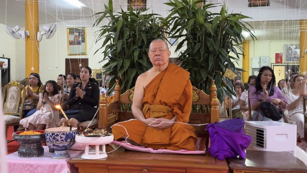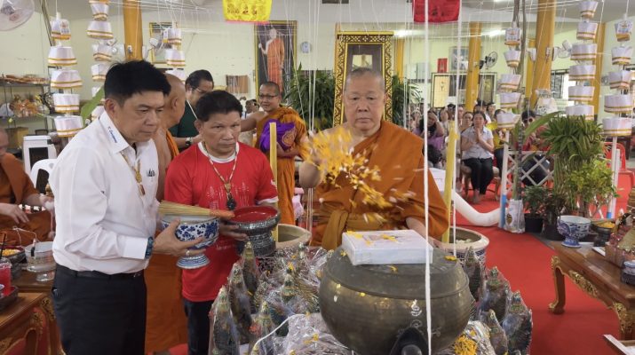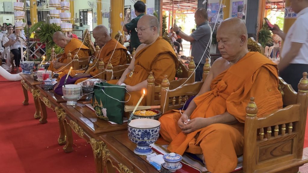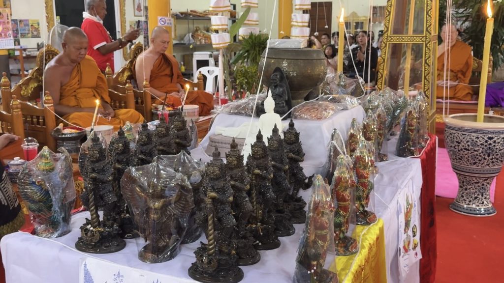 โดย สมเด็จพระมหารัชมงคลมุนี “ สมเด็จธงชัย ” วัดไตรมิตร เมตตาเป็นประธานจุดเทียนชัยในพิธี พร้อมด้วยพระสงฆ์ทรงสมณศักดิ์ เกจิ รวม 9 รูป ร่วมนั่งปรกอธิษฐานจิต สวดเจริญชัยมงคาถา อาทิ พระเทพวัชรจริยาจารย์ วัดกษัตราธิราชวรวิหาร เจ้าคณะจังหวัดพระนครศรีอยุธยา พระวชิโรภาส วัดศาลาปูนวรวิหาร รองเจ้าคณะจังหวัดพระนครศรีอยุธยา พระครูสิริชัยมงคล วัดใหญ่ชัยมงคลวรวิหาร เจ้าคณะอำเภอพระนครศรีอยุธยา พระพิศาลวิหารกิจ วัดหน้าพระเมรุ พระสุวรรณวชิราทร วัดอ่างทองวรวิหาร พระครูโสภณภัทรเวทย์ วัดสายไหม พระครูยติธรรมานุยุต วัดสว่างอารมณ์ พระครูสรภัญญ์พิสุทธิ์ วัดใหม่เทพนิมิตร กรุงเทพมหานคร และ พระครูเกษมจันทวิมล (พระอาจารย์แดง) เจ้าอาวาสวัดป้อมรามัญ เจ้าคณะตำบลท่าวาสุกรีเขต 3 เจ้าของฉายานิ้วมหามงคล