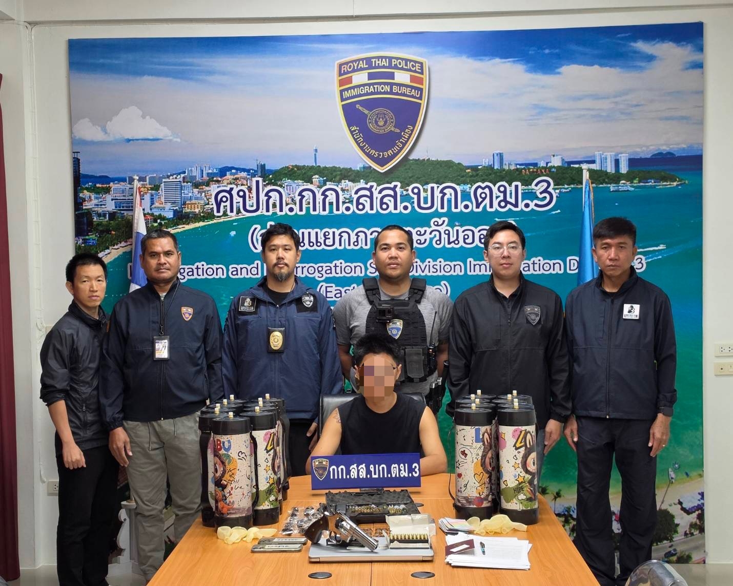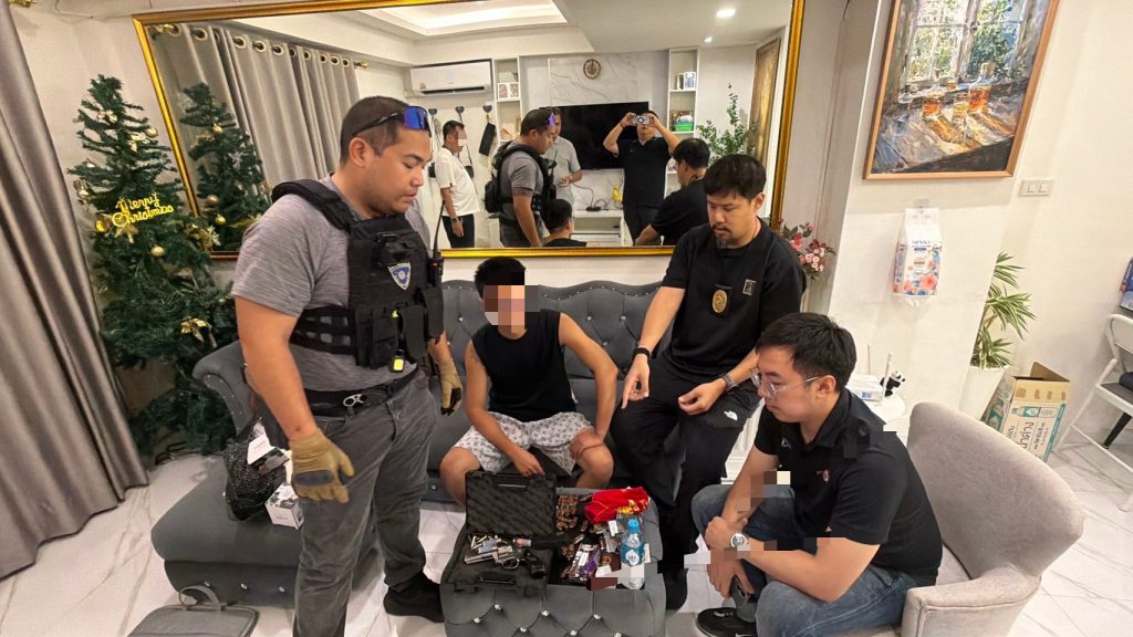 ทลายรังลับมังกรพัทยา!สืบ ตม.3 บุกจับหนุ่มจีน เปิดบ้านค้ายา–ขาย “แก๊สหัวเราะ” ออนไลน์ ยึดปืนเถื่อน กระสุนอื้อ พอตเคเพียบ