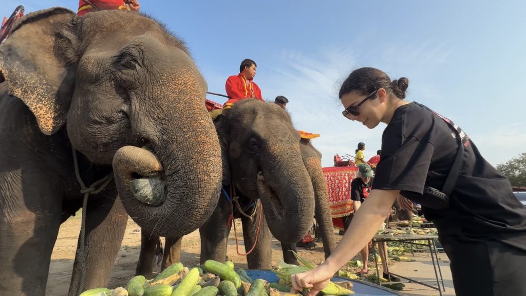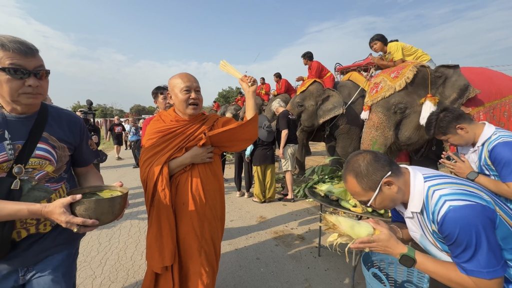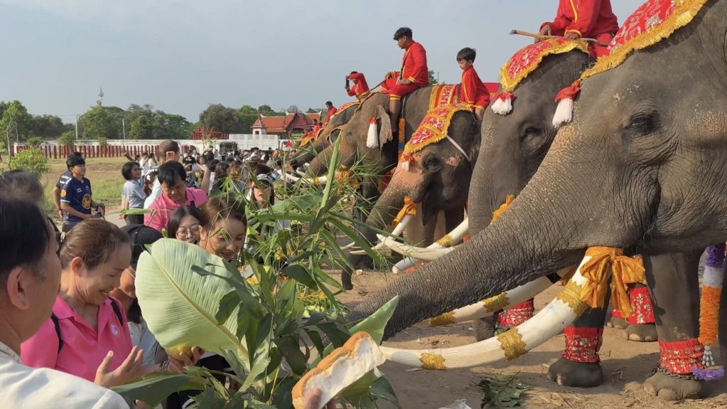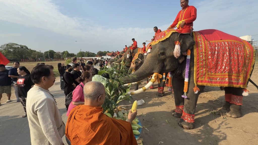วังช้างอยุธยาจัดทำบุญใหญ่ 13 มีนาคม วันช้างไทย ทำบุญอุทิศส่วนกุศลให้ช้าง ที่เสียชีวิต จัดเลี้ยงโต๊ะจีนอาหารผลช้าง 70 เชือก