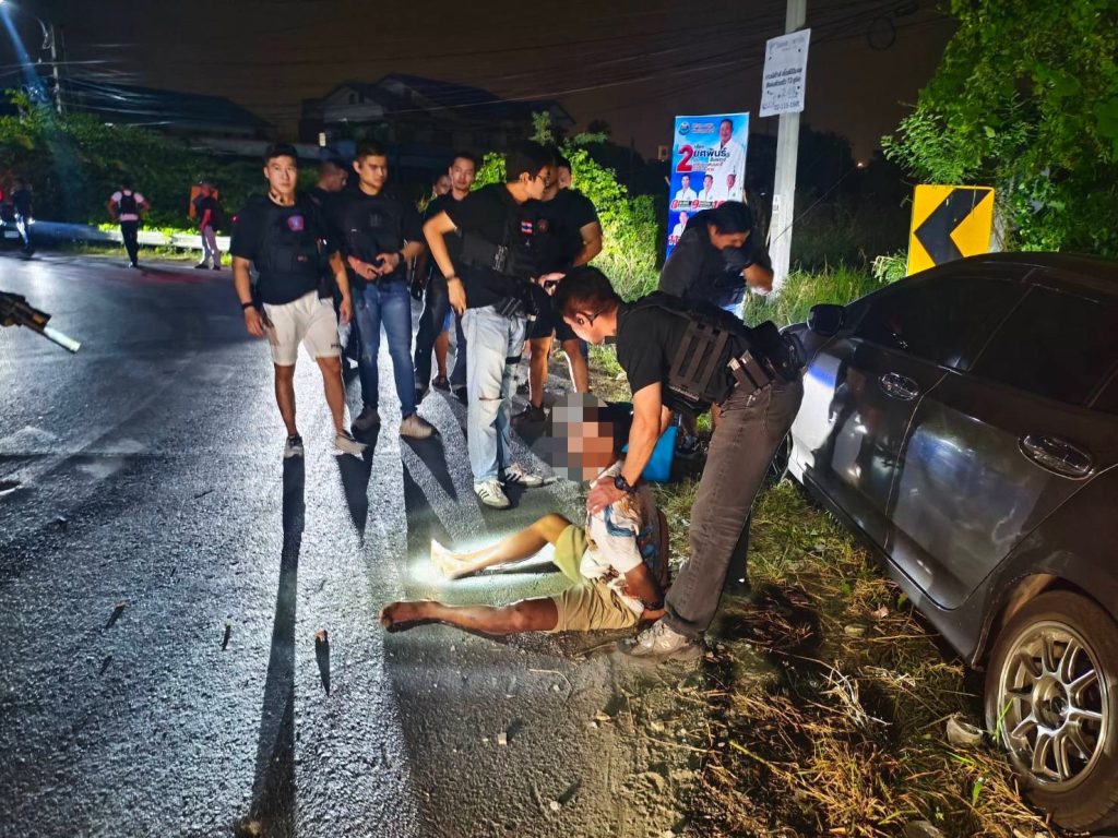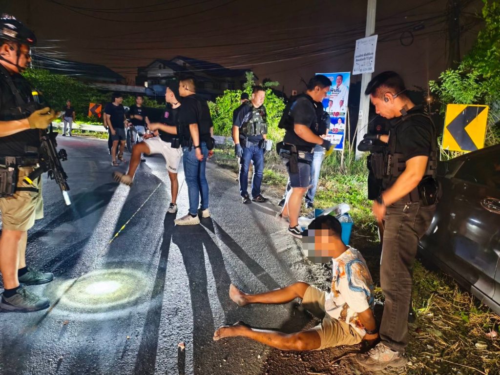 ต่อมาพบรถยนต์คันดังกล่าว ขับขี่มาตามถนนจึงได้แสดงตัวเพื่อขอทำการตรวจค้น แต่ผู้ต้องหาได้พยายามขับรถหลบหนี และได้ถอยรถตกลงบริเวณข้างทาง จากนั้นเจ้าหน้าที่ฯ สามารถควบคุมตัวผู้ต้องหาไว้ได้พร้อมของกลางดังกล่าว จึงแจ้งข้อหาร่วมกันกับพวกที่หลบหนีจำหน่ายยาเสพติดให้โทษในประเภท 1 (ยาบ้าหรือเมทแอมเฟตามีน) โดยมีไว้ในครอบครองเพื่อจำหน่ายโดยไม่ได้รับอนุญาต อันเป็นการกระทำเพื่อการค้า และก่อให้เกิดการแพร่กระจายในกลุ่มประชาชนทำให้เกิดผลกระทบต่อความมั่นคงของรัฐหรือความปลอดภัยของประชาชนทั่วไป, มีอาวุธปืนและเครื่องกระสุนปืนไว้ในความครอบครองโดยไม่ได้รับอนุญาต” นำตัวส่งพนักงานสอบสวนดำเนินคดีตามกฎหมายต่อไป