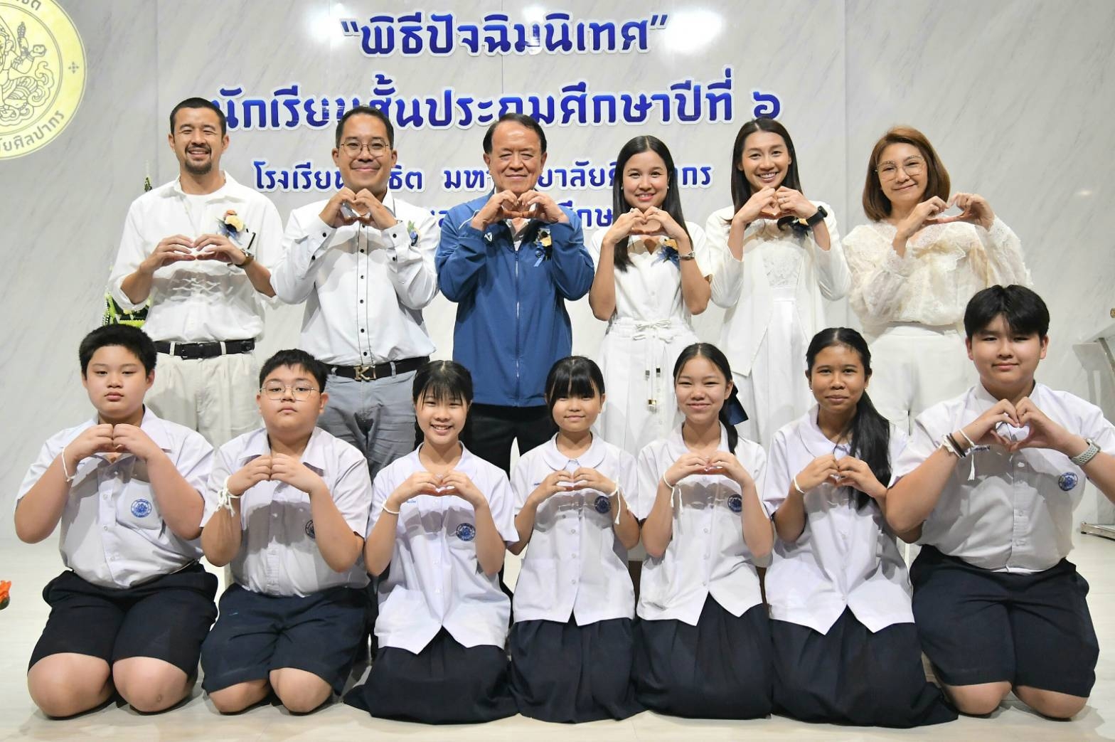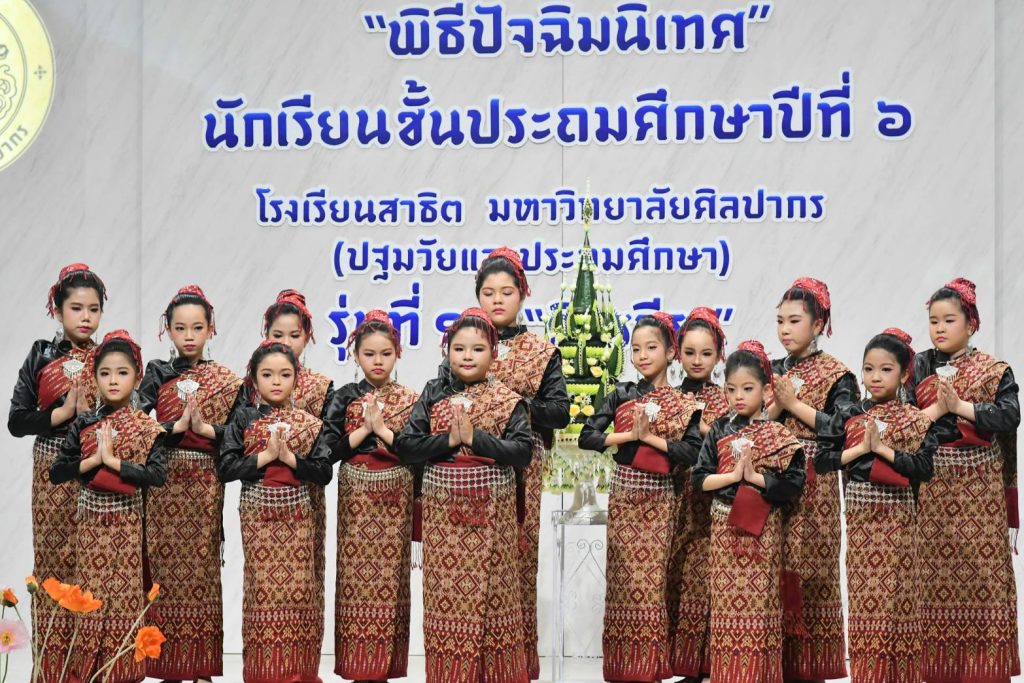“ขอขมา กราบอำลาคุณครู” โดยมีคณะผู้บริหารร่วมกันติดเข็มกลัดกล้วยไม้ และมอบประกาศนียบัตรจบการศึกษา ป.6 พร้อมที่จะก้าวออกจากรั้วสาธิตแห่งนี้ไปเป็นนักเรียนระดับมัธยมศึกษา ซึ่ง ศ.ดร.คณิต เขียววิชัย คณบดีคณะศึกษาศาตร์ มหาวิทยาลัยศิลปากร