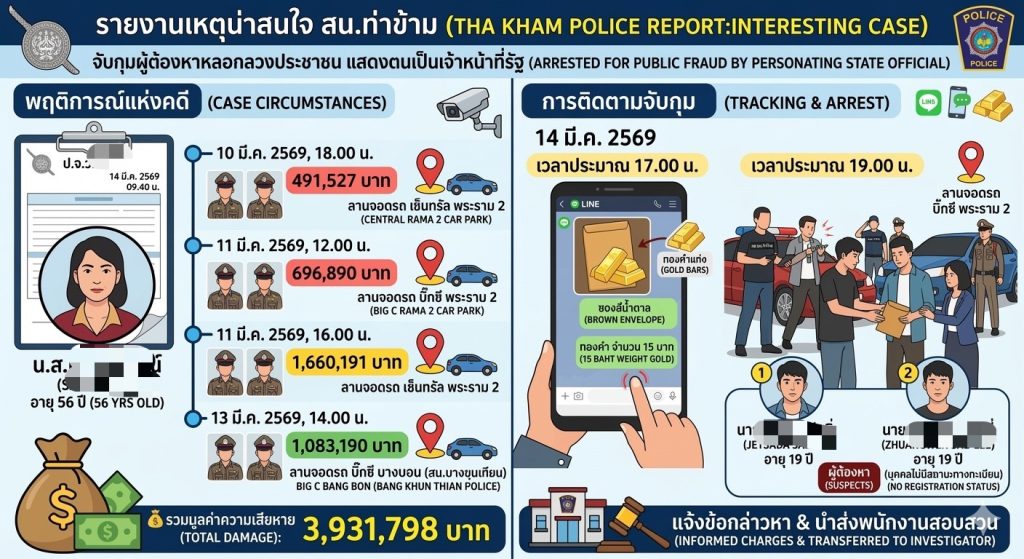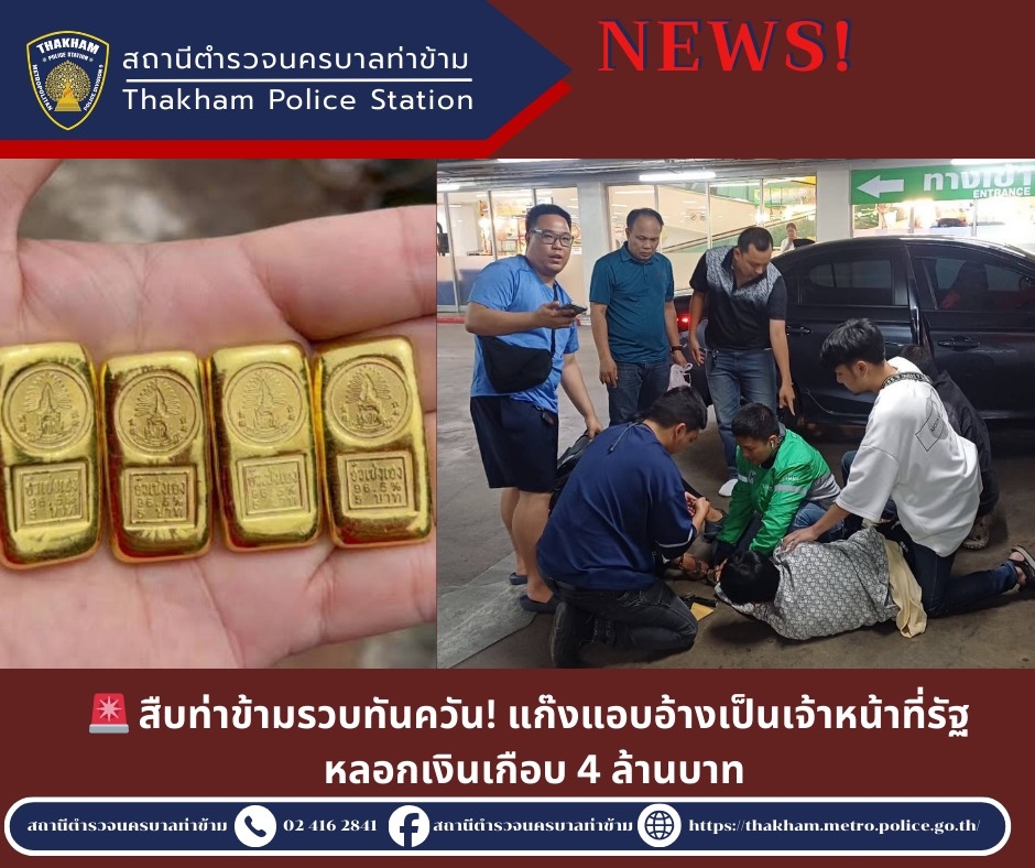 สืบท่าข้ามรวบทันควัน! แก๊งแอบอ้างเป็นเจ้าหน้าที่รัฐ หลอกเงินเกือบ 4 ล้านบาท