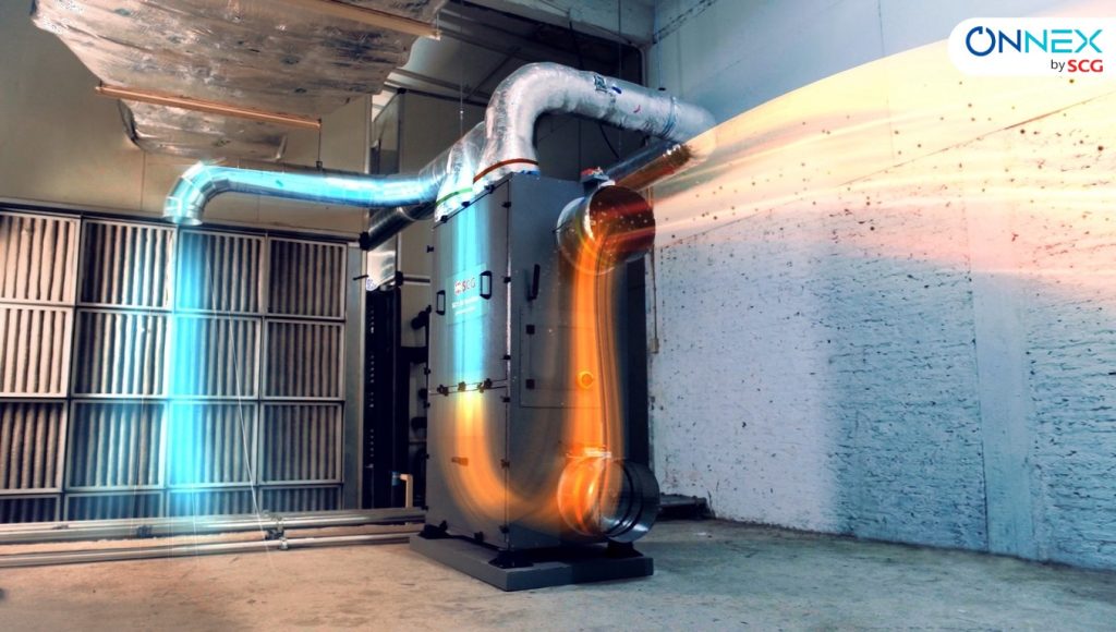 ONNEX Air Scrubber ระบบบำบัดอากาศภายในอาคารที่สามารถดูดจับ CO₂ และสารระเหยได้โดยตรง ช่วยลดความจำเป็นในการนำ Fresh Air จากภายนอกเข้ามาในปริมาณมาก ส่งผลให้ลดภาระการทำงานของระบบปรับอากาศ และทำให้การใช้พลังงานมีประสิทธิภาพมากยิ่งขึ้น