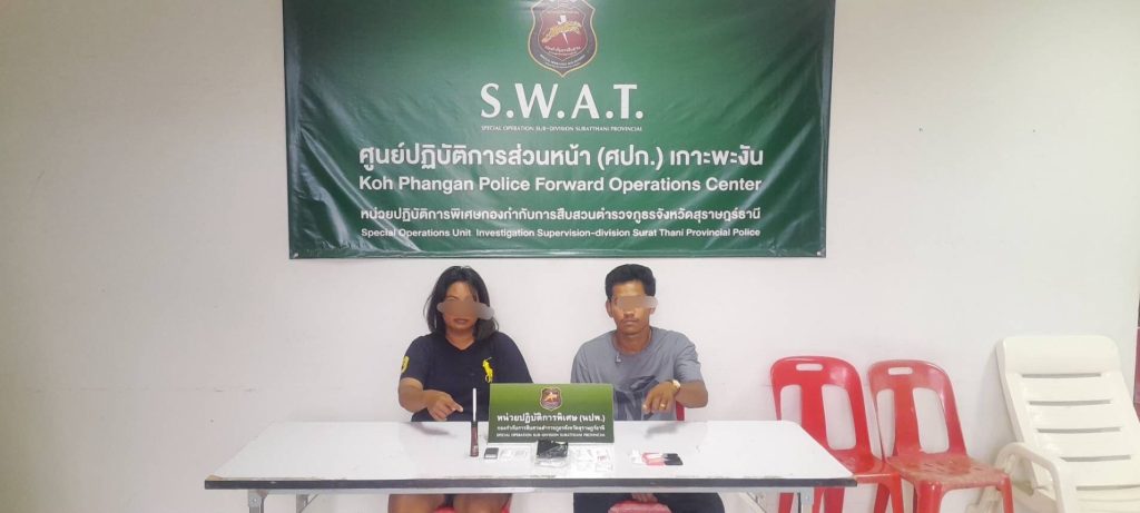 รายที่ 2.ได้ร่วมกันจับกุมตัวนายกิตติ อายุ 36 ปี ที่อยู่ 106 ม.3 ต.เทพราช อ.สิชล จ.นครศรีธรรมราช และนางกนกอร ยามดี อายุ34 ปี ที่อยู่ 29/1 ม.7 ต.ทุ่งวัง อ.สตึก จ.บุรีรัมย์พร้อมด้วยของกลาง ยาบ้า จำนวน 12 เม็ด,ไอซ์ น้ำหนักรวม ประมาณ 60 กรัม ,โทรศัพท์มือถือ จำนวน 1 เครื่อง,และอุปกรณ์ยาเสพติด อื่นๆ โดยสามารถจับกุมทั้งคู่ได้ที่บ้านเลขที่ 24/1 ม.2 บ้านในสวน ต.เกาะพะงัน อ.เกาะพะงัน จ.สุราษฎร์ธานี นำตัวส่ง พนักงานสอบสวน สภ.เกาะพะงันดำเนินคดีข้อหา “ร่วมกันจำหน่ายยาเสพติดให้โทษประเภท 1 (เมทแอมเฟตามีน หรือ ยาบ้าและไอซ์) โดยมีไว้ในครอบครองเพื่อจำหน่ายไม่ได้รับอนุญาต อันเป็นการกระทำเพื่อการค้า และก่อให้เกิดการแพร่กระจายในกลุ่มประชาชนโดยไม่ได้รับอนุญาต” และ เสพยาเสพติดให้โทษประเภท1 (เมทแอมเฟตามีน) โดยผิดกฎหมาย”
