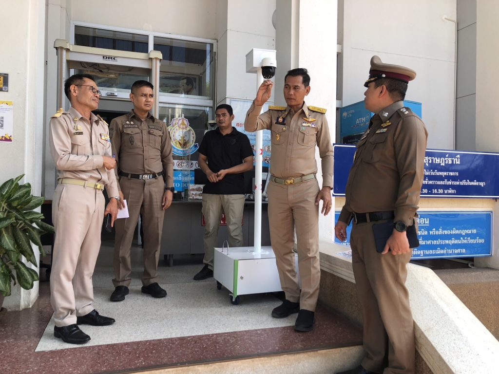 ศาลจังหวัดสุราษฎร์ธานีร่วมมือสภ.เมืองสุราษฎร์ธานีติดตั้งกล้องหมายจับด้วยเทคโนโลยีกล้องระบบAI สแกนใบหน้าตาม”โครงการเมืองสุราษฎร์ Smart City “เฟส2