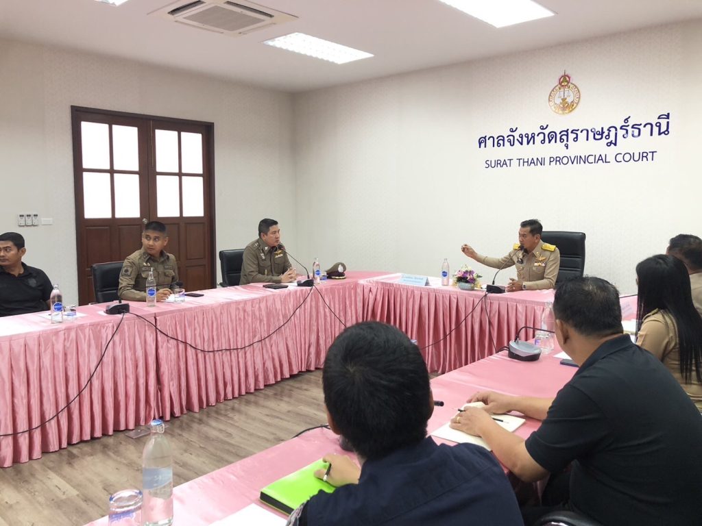 ที่ห้องประชุมศาลจังหวัดสุราษฎร์ธานี นายตรัสภณ ภัทรภรพงศ์ ผู้พิพากษาหัวหน้าศาลจังหวัดสุราษฎร์ธานี พ.ต.อ.พรณรงค์ การอรชัย ผกก.สภ.เมืองสุราษฎร์ธานี พร้อมนายณัฐอนันต์ สงพราหมณ์ ผอ.ศาลจังหวัดสุราษฎร์ธานี พ.ต.ท.ธานี วิรวิกรม สวป.สภ.เมืองสุราษฎร์ธานี และเจ้าหน้าที่เกี่ยวข้องร่วมทำความเข้าใจการติดตั้งเทคโนโลยีกล้องระบบAI สแกนใบหน้าตาม”โครงการเมืองสุราษฎร์ สมาร์ต ซิตี้ (Mueang Surat Smart City)” เฟส2 นำกล้องสแกนตรวจจับใบหน้าคนร้ายตามหมายจับ มาติดตั้งที่ศาลจังหวัดสุราษฎร์ธานีเป็นครั้งแรก