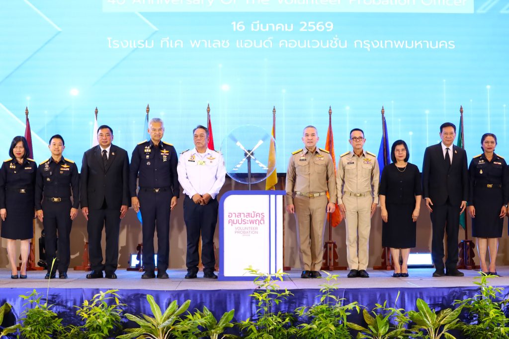 เมื่อวันที่ 16 มี.ค.69 ที่โรงแรมทีเค พาเลซ แอนด์ คอนเวนชั่น กรุงเทพฯ พล.ต.ท.รุทธพล เนาวรัตน์ รัฐมนตรีว่าการกระทรวงยุติธรรม (รมว.ยธ.) เป็นประธานพิธีเปิดโครงการ “40 ปี วันอาสาสมัครคุมประพฤติ พลังแห่งการให้ สู่สังคมที่ปลอดภัยและยั่งยืน” พร้อมมอบโล่ประกาศเกียรติคุณอาสาสมัครคุมประพฤติ โดยมี พล.ต.ท.สรรเพชญ สุขภิมนตรี ที่ปรึกษารัฐมนตรีว่าการกระทรวงยุติธรรม นางธารินี แสงสว่าง รองปลัดกระทรวงยุติธรรม พ.ต.ท.ประวุธ วงศ์สีนิล อธิบดีกรมราชทัณฑ์ และมี ร.ต.อ.ปิยะ รักสกุล อธิบดีกรมคุมประพฤติ เป็นผู้กล่าวรายงานฯ พร้อมด้วย นายสิทธิ สุธีวงศ์ รองอธิบดีกรมคุมประพฤติ นางนุสรา วงษ์สุวรรณ รองอธิบดีกรมคุมประพฤติ นางยศวันต์ บริบูรณ์ธนา รองอธิบดีกรมคุมประพฤติ ผู้บริหาร ข้าราชการ อาสาสมัครคุมประพฤติทั่วประเทศ และภาคีเครือข่าย เข้าร่วมงานอย่างพร้อมเพรียง