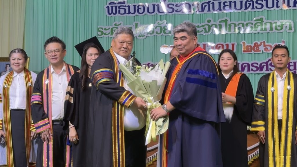 โดยหลังจากมอบประกาศนียบัตรให้กับนักเรียนทั้งหมดแล้ว นายธนรัตน์ จรัสศรี รักษาการณ์ปลัดเทศบาลนครพระนครศรีอยุธยา เป็นตัวแทน คณะผู้บริหารเทศบาลฯ หัวหน้าส่วนราชการ มอบช่อดอกไม้แสดงความยินดีกับ ว่าที่ร้อยตรี ดร.สมทรง สรรพโกศลกุล นายกเทศมนตรีนครพระนครศรีอยุธยา ในโอกาสที่ได้รับคัดเลือก ว่าที่ร้อยตรีสมทรง สรรพโกศลกุล เข้ารับรางวัลบุษราคัมมณีศรีราชภัฏ ครั้งที่ 23 ประจำปีพุทธศักราช 2569 สาขาการศึกษาและพัฒนาคุณภาพชีวิตอีกด้วย