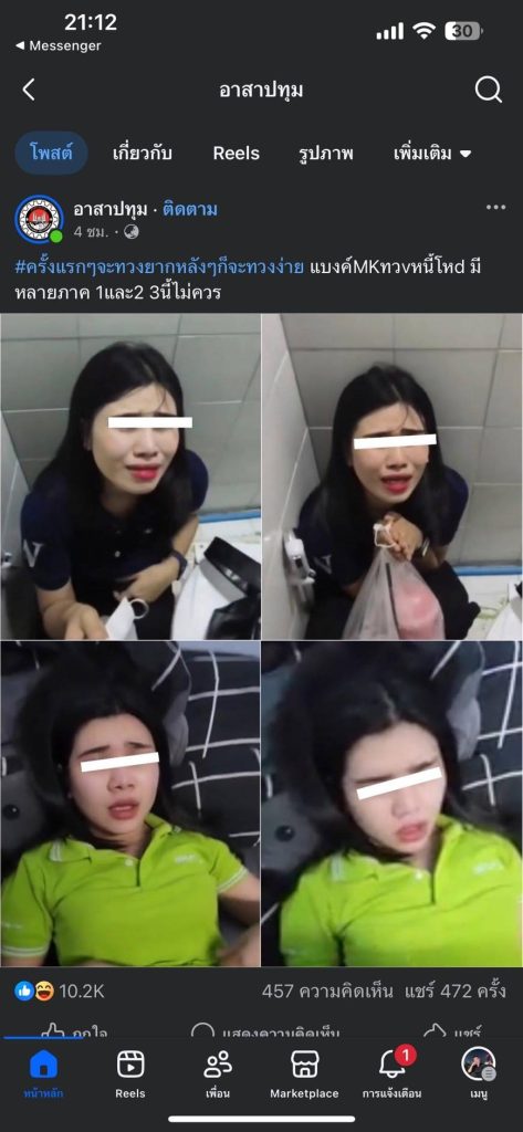 จากกรณี เพจเฟซบุ๊กซ้อเปา แฉพฤติกรรมแก๊งเงินกู้นอกระบบ ทวงหนี้ถึงที่ทำงาน กดดันลูกหนี้อย่างหนัก ลากเข้าห้องน้ำพาไปขัดดอก ปรากฏคลิปเหตุการณ์หญิงสาวรายหนึ่งถูกกลุ่มปล่อยเงินกู้นอกระบบตามทวงหนี้ถึงสถานที่ทำงาน ก่อนจะโดนลากพาเข้าไปในห้องน้ำเพื่อเคลียร์เรื่องหนี้สิน จากข้อมูลที่ถูกแชร์ในโซเชียลระบุว่า กลุ่มเงินกู้ดังกล่าวมีพฤติกรรมตามทวงดอกเบี้ยอย่างหนัก หากลูกหนี้ไม่มีเงินจ่ายทันเวลาจะถูกบังคับและกดดันในลักษณะที่เข้าข่ายการข่มขืนบังคับจิตใจ อีกทั้งเหตุการณ์ลักษณะนี้ไม่ได้เกิดขึ้นเพียงครั้งเดียว ยังมีคลิปอื่นที่ปรากฏว่าลูกหนี้ถูกตามทวงหนี้ถึงที่ทำงานเช่นกันนั้น