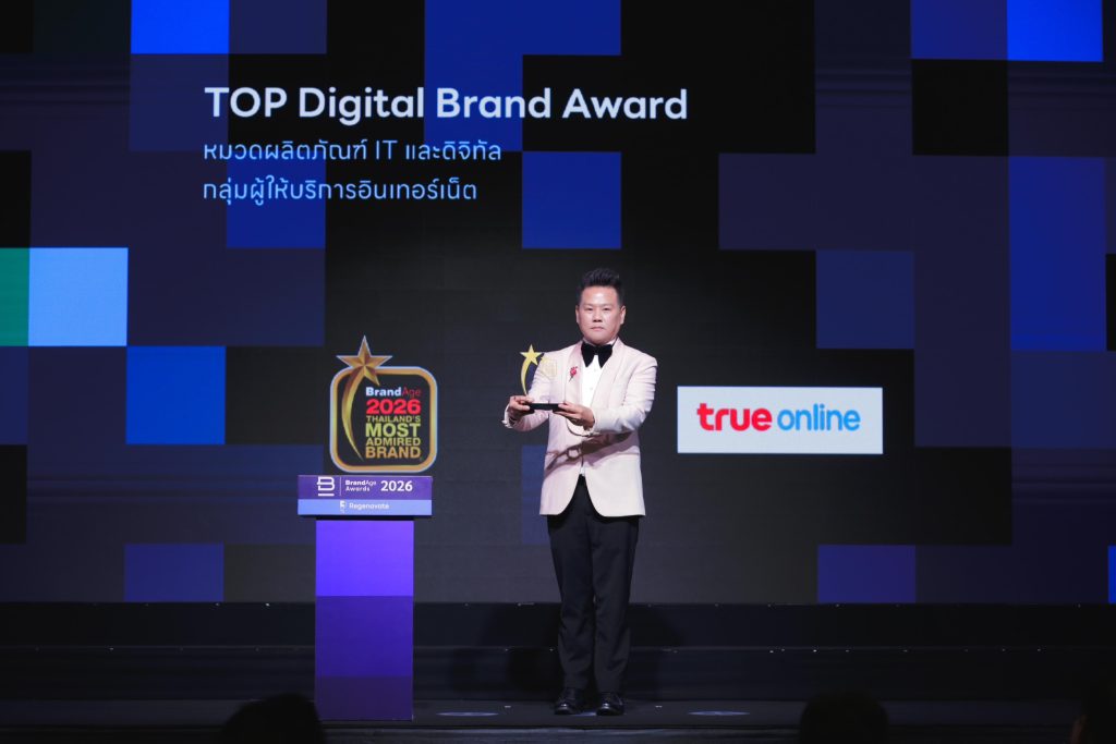 กรุงเทพฯ 18 มีนาคม 2569 – ทรูออนไลน์ คว้ารางวัลพิเศษ Top Digital Brand Award พร้อมครอง Thailand’s Most Admired Brand 2026 ในหมวดผลิตภัณฑ์ IT และดิจิทัล กลุ่มผู้ให้บริการอินเทอร์เน็ตต่อเนื่องเป็นปีที่ 13 การันตีความเป็น แบรนด์ผู้นำที่น่าเชื่อถือที่สุดในอุตสาหกรรมผู้ให้บริการอินเทอร์เน็ต จากผลสำรวจของ BrandAge สะท้อนความไว้วางใจจากผู้บริโภคทั่วประเทศ และความเชื่อมั่นต่อคุณภาพโครงข่ายและบริการที่พัฒนาอย่างต่อเนื่อง โดยมี คุณโอลิเวอร์ กิตติพงษ์ วีระเตชะ หัวหน้าคณะผู้บริหารด้านแบรนด์และการสื่อสาร บมจ. ทรู คอร์ปอเรชั่น เป็นตัวแทนรับมอบรางวัล