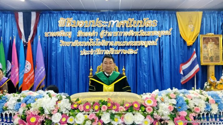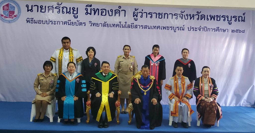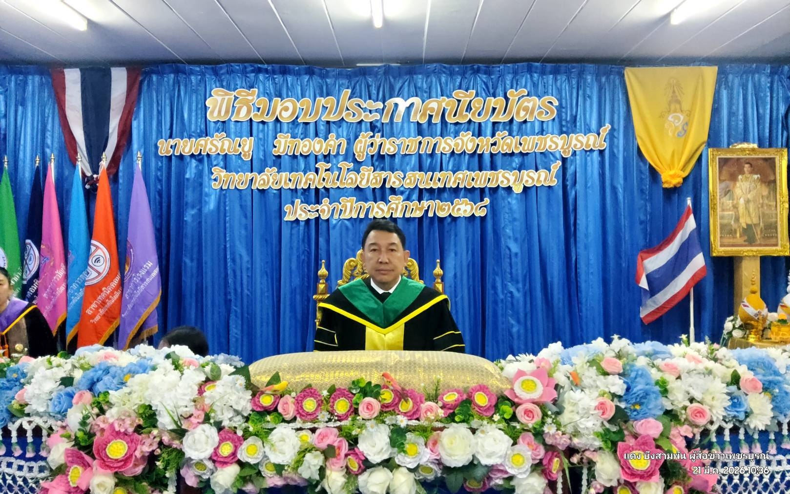 นายศรัณยู มีทองคำ ผู้ว่าราชการจังหวัดเพชรบูรณ์ เป็นประธานในพิธีมอบใบประกาศนียบัตรแก่ผู้สำเร็จการศึกษา โดยมี