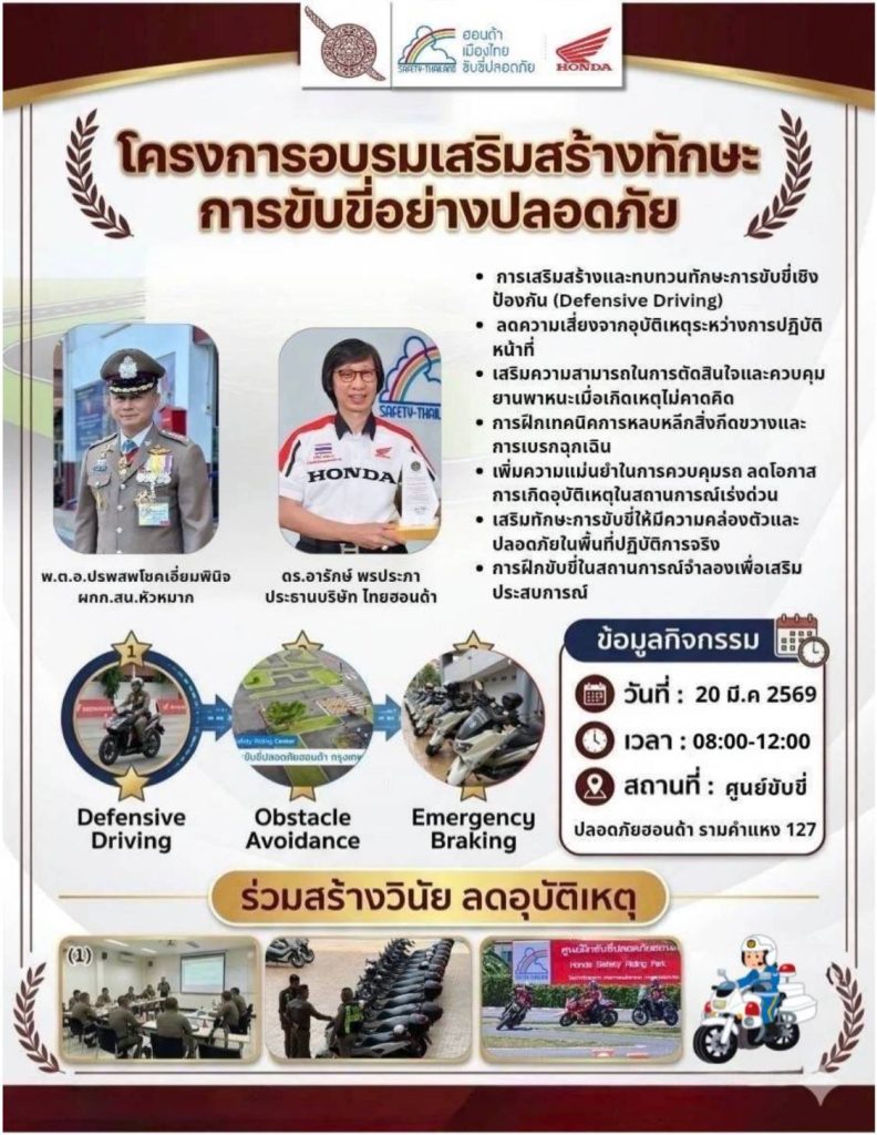 สน.หัวหมาก ร่วมกับบริษัทไทยฮอนด้า จำกัด พัฒนาตำรวจยุคใหม่ ขับขี่ปลอดภัย ลดอุบัติเหตุ