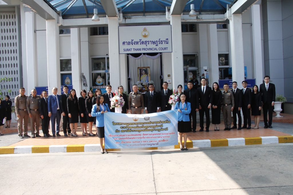 อธิบดีผู้พิพากษาภาค 8 ผบก.ภ.จว.สุราษฎร์ธานี เปิดโครงการบูรณาการการทำงานร่วมกันระหว่างศาลจังหวัดสุราษฎร์ธานี กับ สถานีตำรวจกธรเมืองสุราษฎร์ธานีเพื่อยกระดับความปลอดภัย ติดตามบุคคลตามหมายจับและบุคคลที่มีพฤติการณ์เกี่ยวข้องกับอาชญากรรม(“โครงการเมืองสุราษฎร์ Smart City เฟส2”)